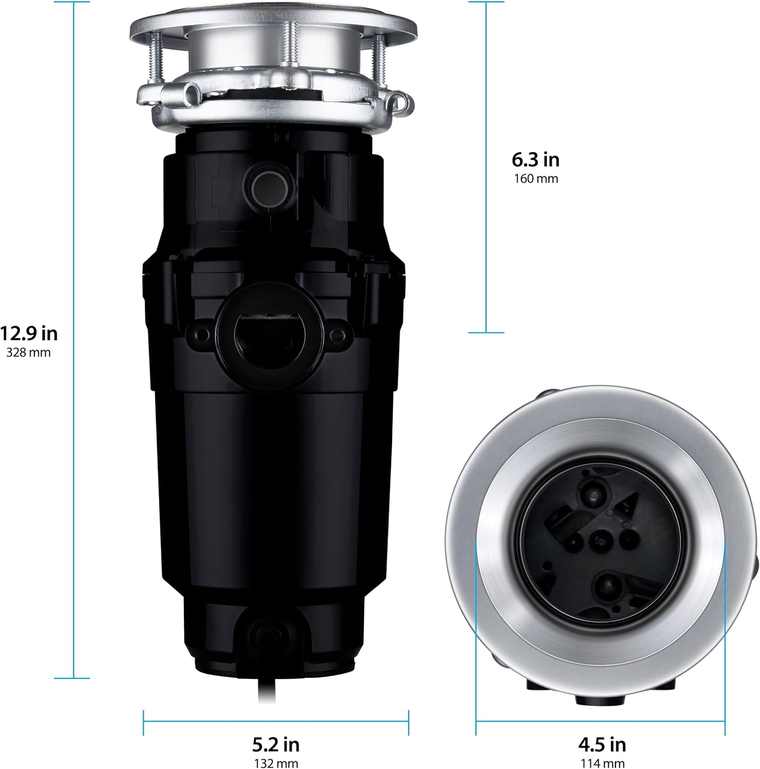 - TORQUE MASTER GRINDING SYSTEM: Anti-jam Torque Master stainless steel grinding system delivers maximum torque for cutting through waste and a durable turntable with balanced impellers for less vibration, quieter operation, and longer life