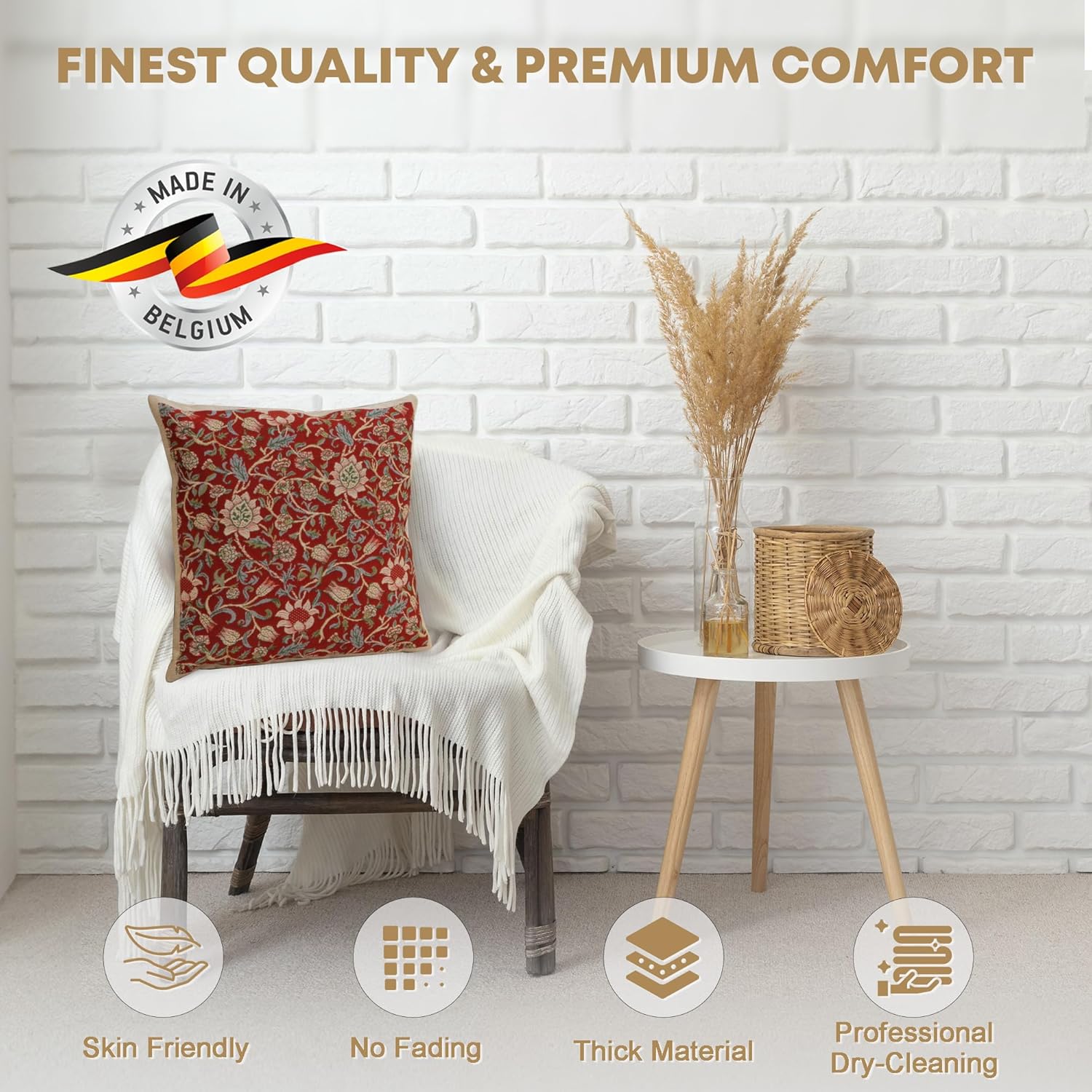 - Impeccable Craftsmanship: Are you searching for the perfect ambiance for your loved ones? Say goodbye to the crappy throw pillow cover and experience the epitome of Jacquard fabric decorative pillow covers made with high-quality 100% cotton. Elevate the aesthetics of your living space using our red flower tapestry pillow covers. Impress your guests with our carefully crafted handmade covers, created by artisans in Belgium on woven panels to add splendid details to your decor