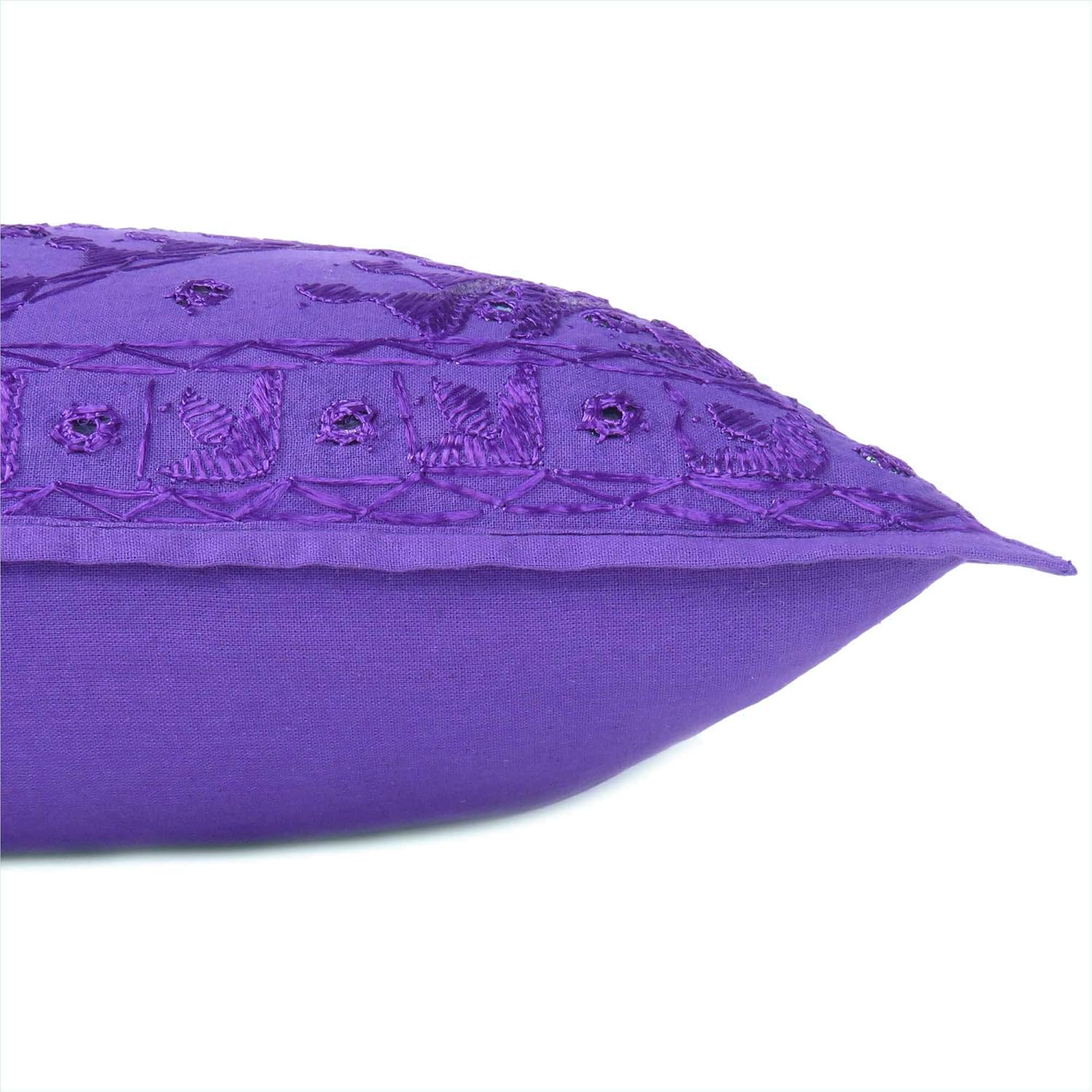 Eyes of India Embroidered Decorative Boho Throw Pillow Cover with Mirrors, Handmade Bohemian Accent Cushion Case for Sofa Couch Bedroom Living Room (Purple, 16" x 16")