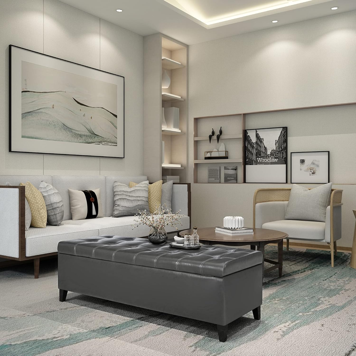 Joveco Storage Ottoman Bench, Tufted Leather 51 Inch Storage Bench for End of Bed Bedroom Living Room (51”, Dark Gray)