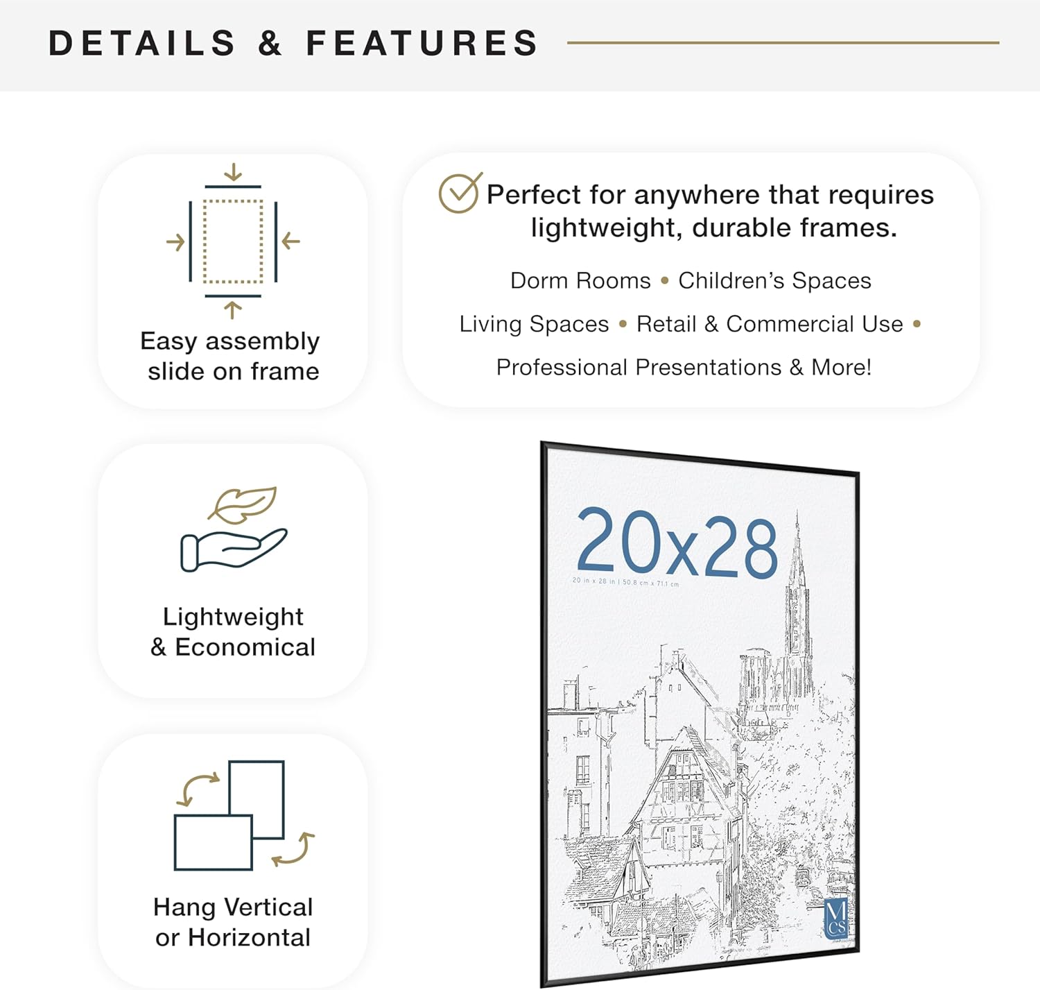 MCS Original Poster Frame 20x28 Black Lightweight Vertical & Horizontal Wall Hanging Large Picture Frame for Posters, Art Prints & Gallery Wall (2-Pack)