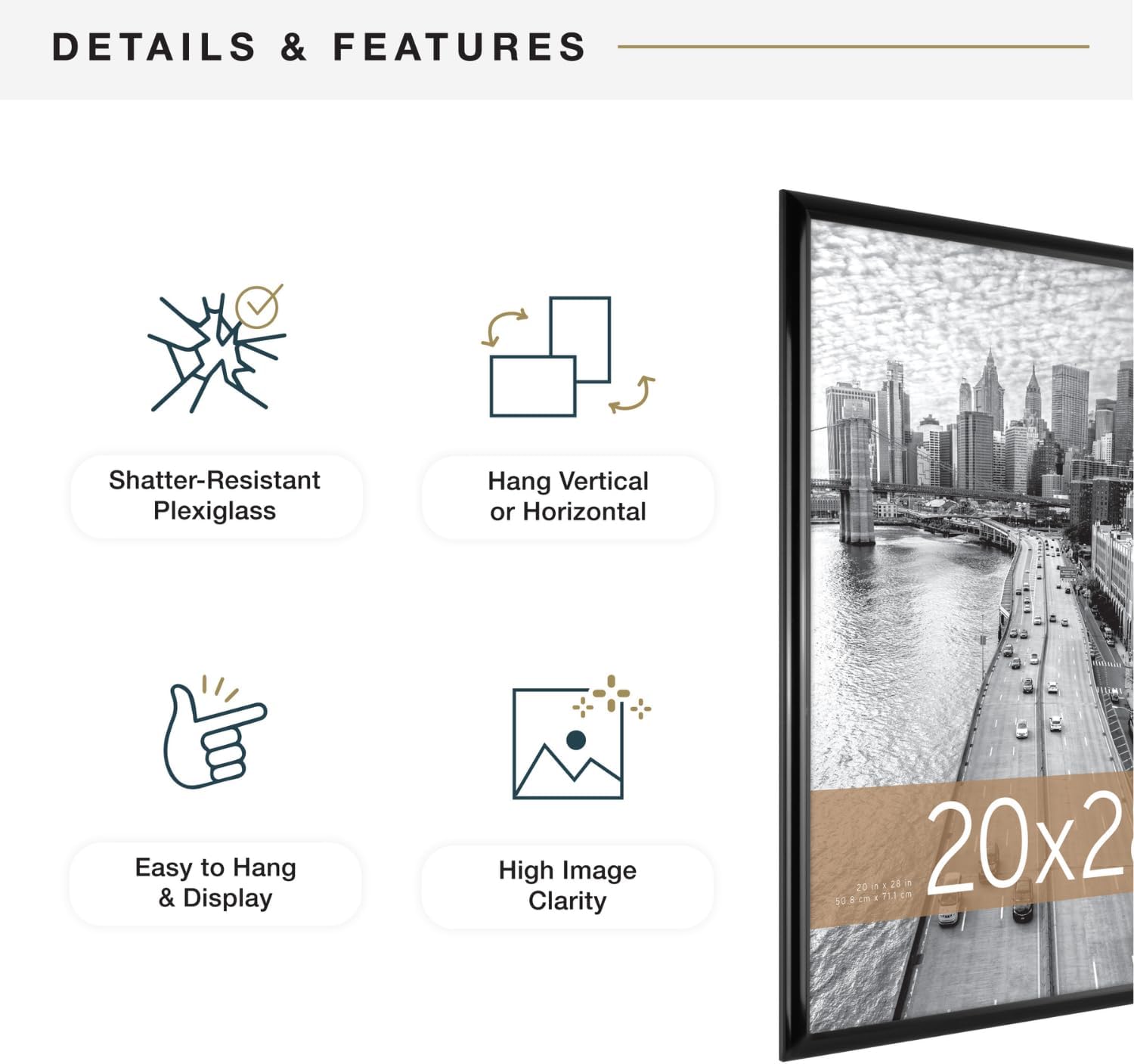 MCS Trendsetter 20x28 Poster Frame Black High-Gloss, Vertical & Horizontal Wall Hanging Large Picture Frame for Photos, Posters & Art Prints (1-Pack)