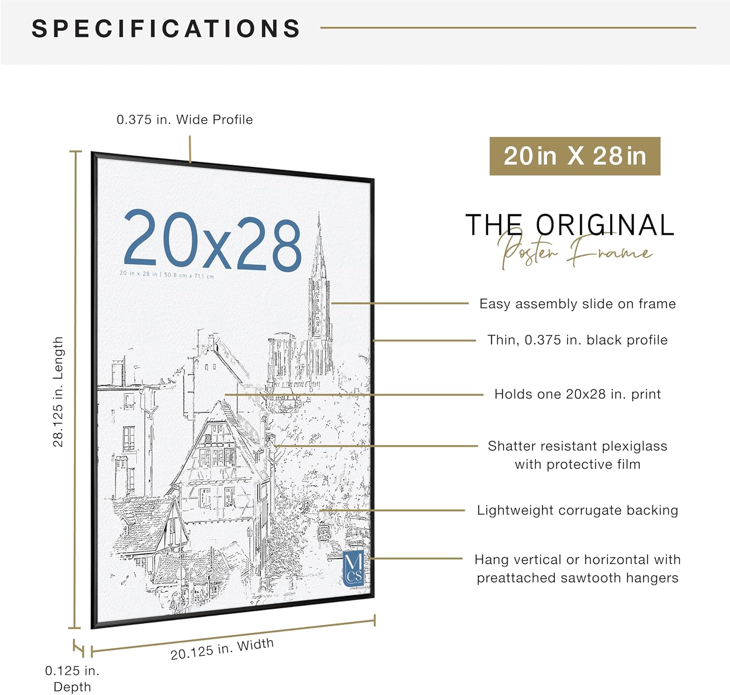 MCS Original Poster Frame 20x28 Black Lightweight Vertical & Horizontal Wall Hanging Large Picture Frame for Posters, Art Prints & Gallery Wall (1-Pack)