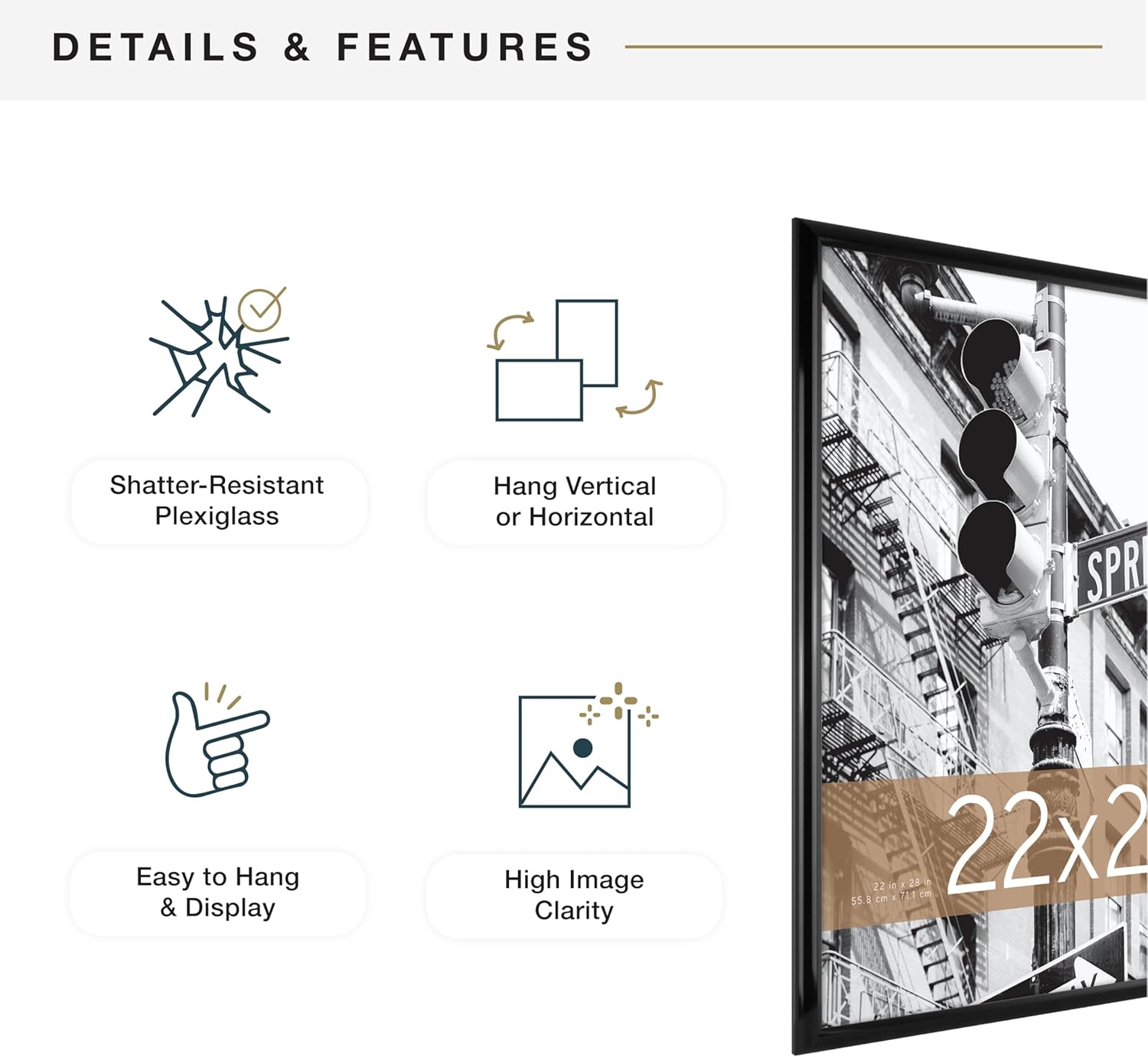 MCS Trendsetter 22x28 Poster Frame Black High-Gloss, Vertical & Horizontal Wall Hanging Large Picture Frame for Photos, Posters & Art Prints (1-Pack)