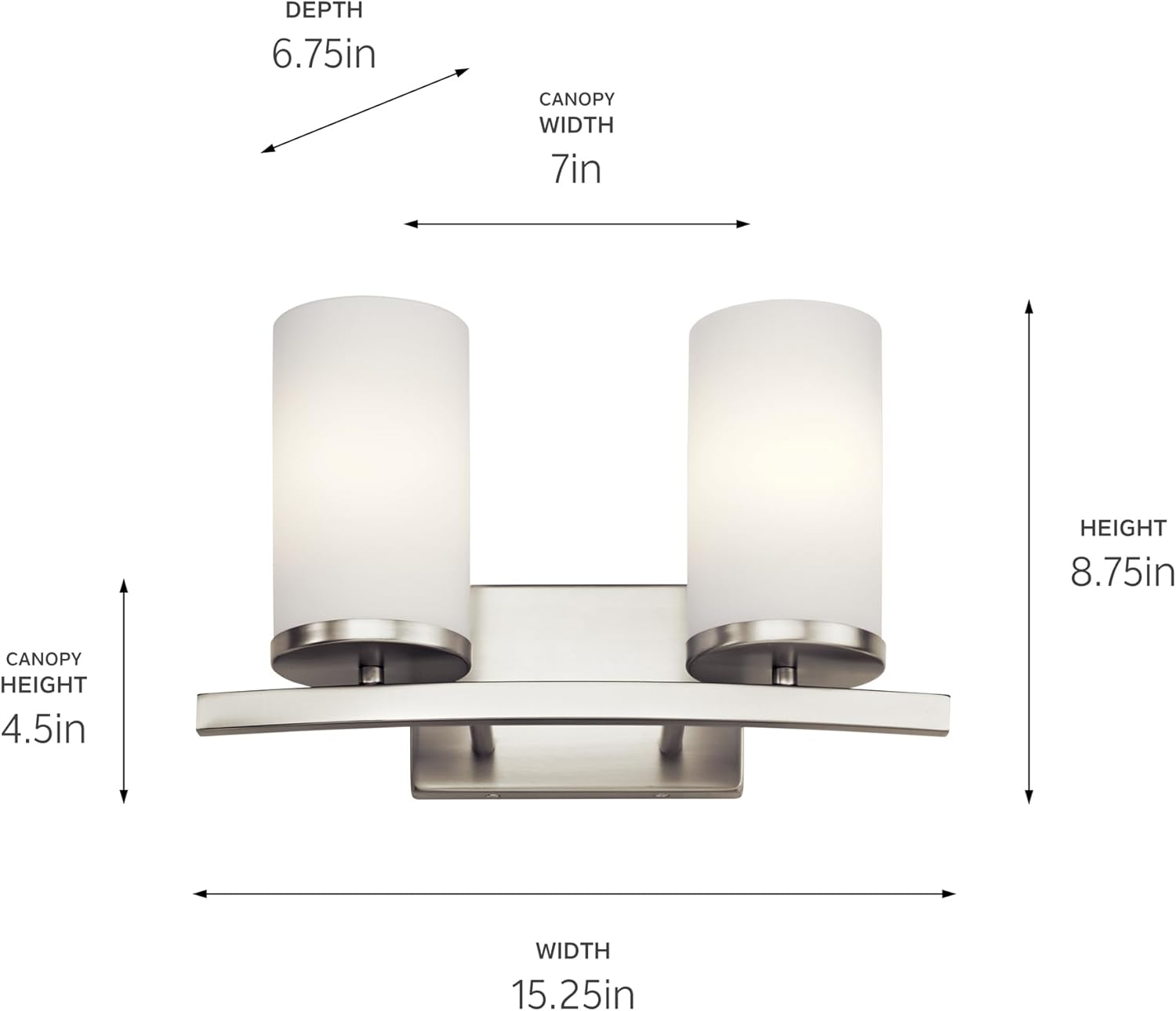 Kichler Crosby 15" 2 Light Vanity Light Satin Etched Cased Opal Brushed Nickel
