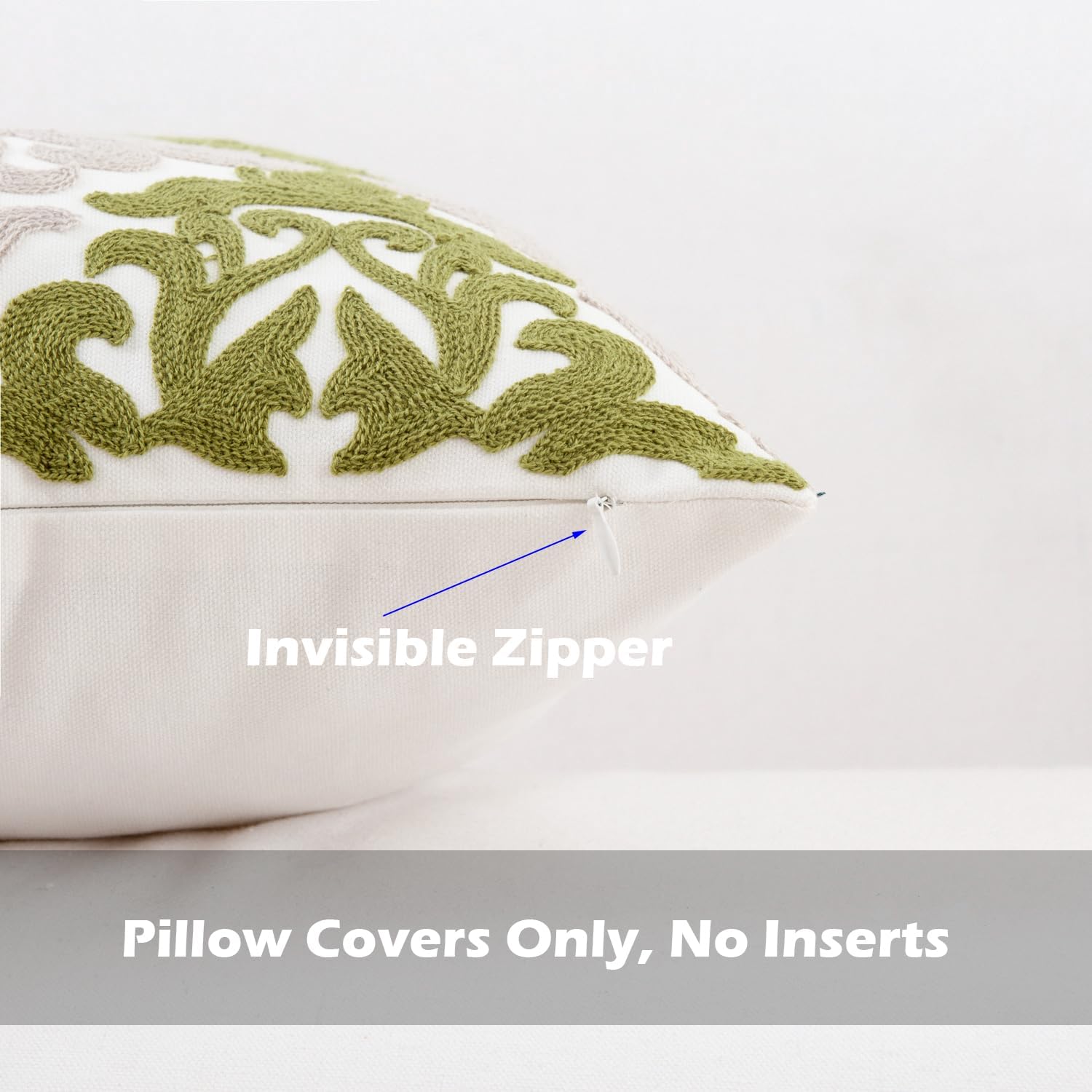 - Size & Material: This 18 x 18 inch (18 by 18) square throw pillow cover is made of 100% thick cotton canvas for durability. The crisp white fabric is soft yet sturdy, featuring beautiful single-sided embroidery for an elegant touch