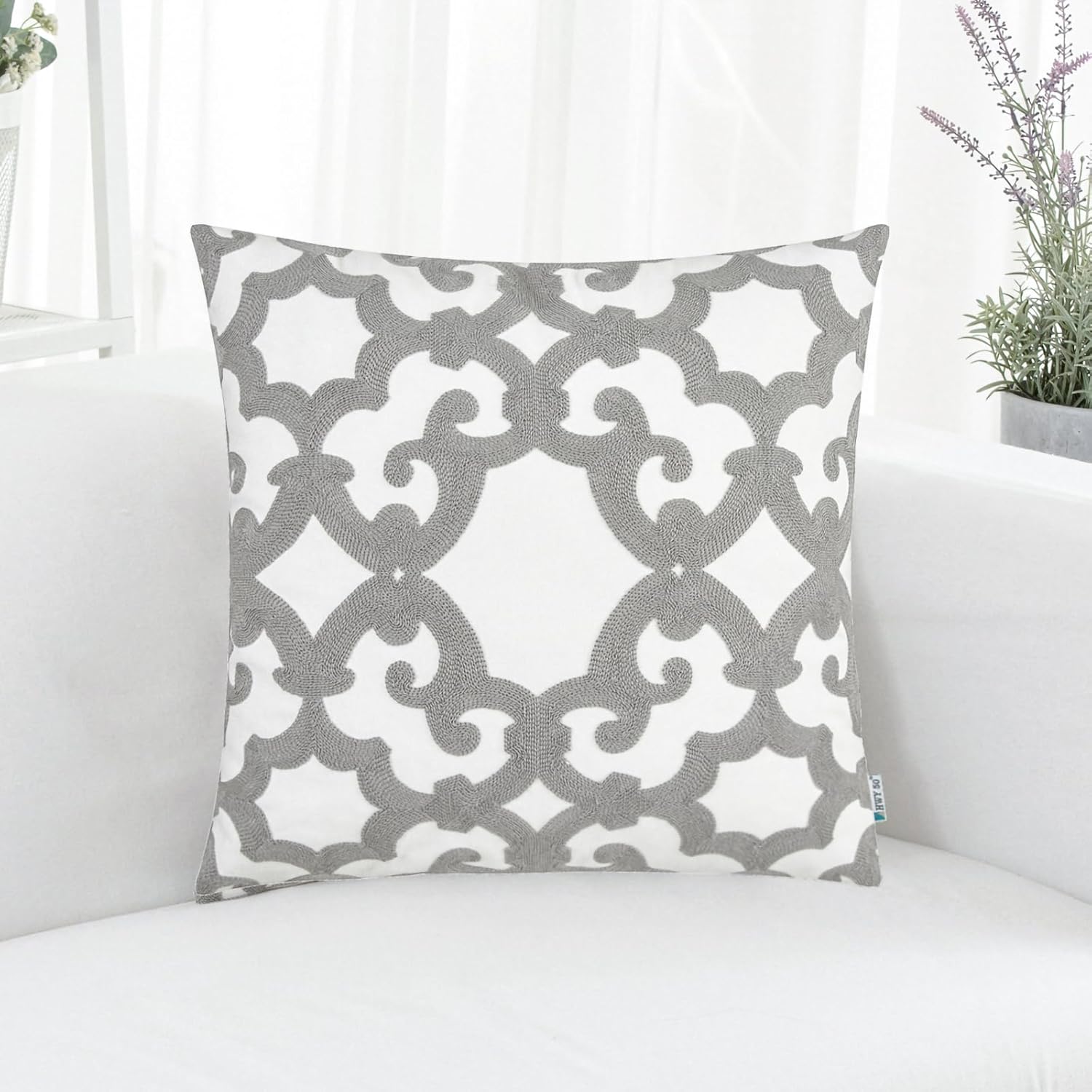 - Size & Material: This 18 x 18 inch (18 by 18) square throw pillow cover is made of 100% thick cotton canvas for durability. The crisp white fabric is soft yet sturdy, featuring beautiful single-sided embroidery for an elegant touch