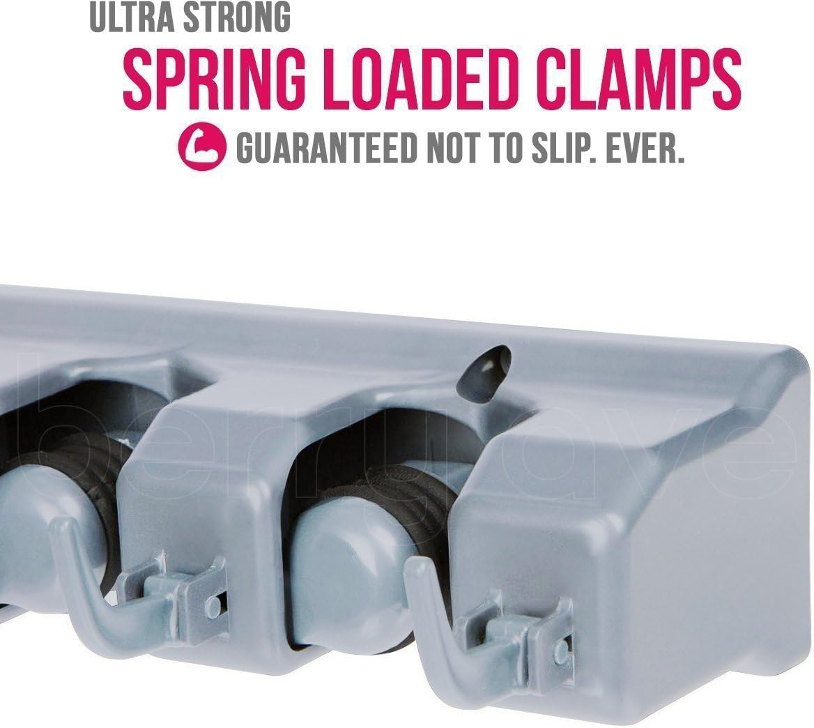- NO SLIDE, NO MESS β Each commercial grade broom hanger has a 35 pound holding capacity. Thanks to the spring loaded, double rubber gripped slots, the Berry Ave utility hooks can hold anything from wet mops and dirty rakes to baseball bats, without any annoying slipping.