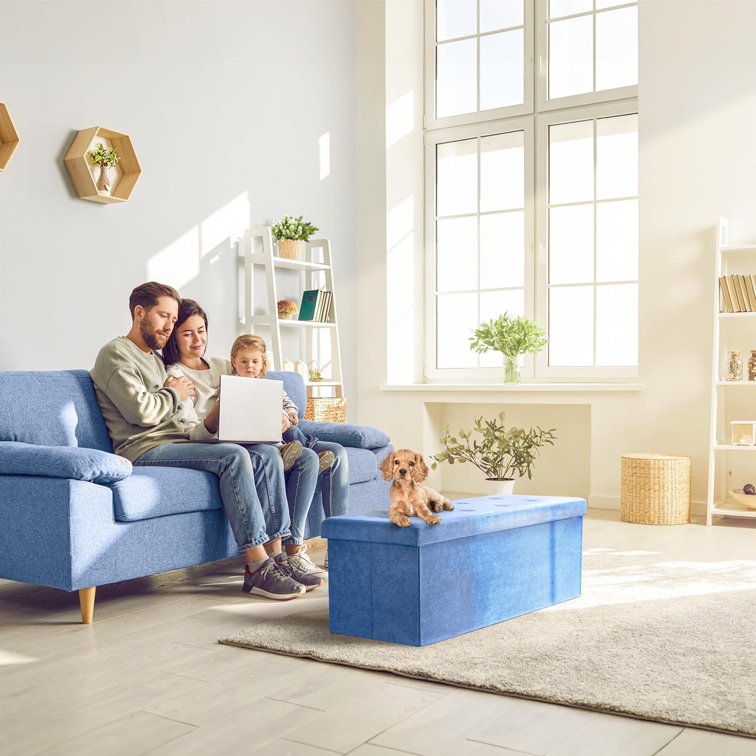 - LARGE SUEDE STORAGE BENCH (TEAL) — Add storage and seating with a beautiful rectangular shaped folding bench, perfect for storing a variety of items— Tuck away linens, games, books, blankets, accessories, and more to maximize your space with contemporary style