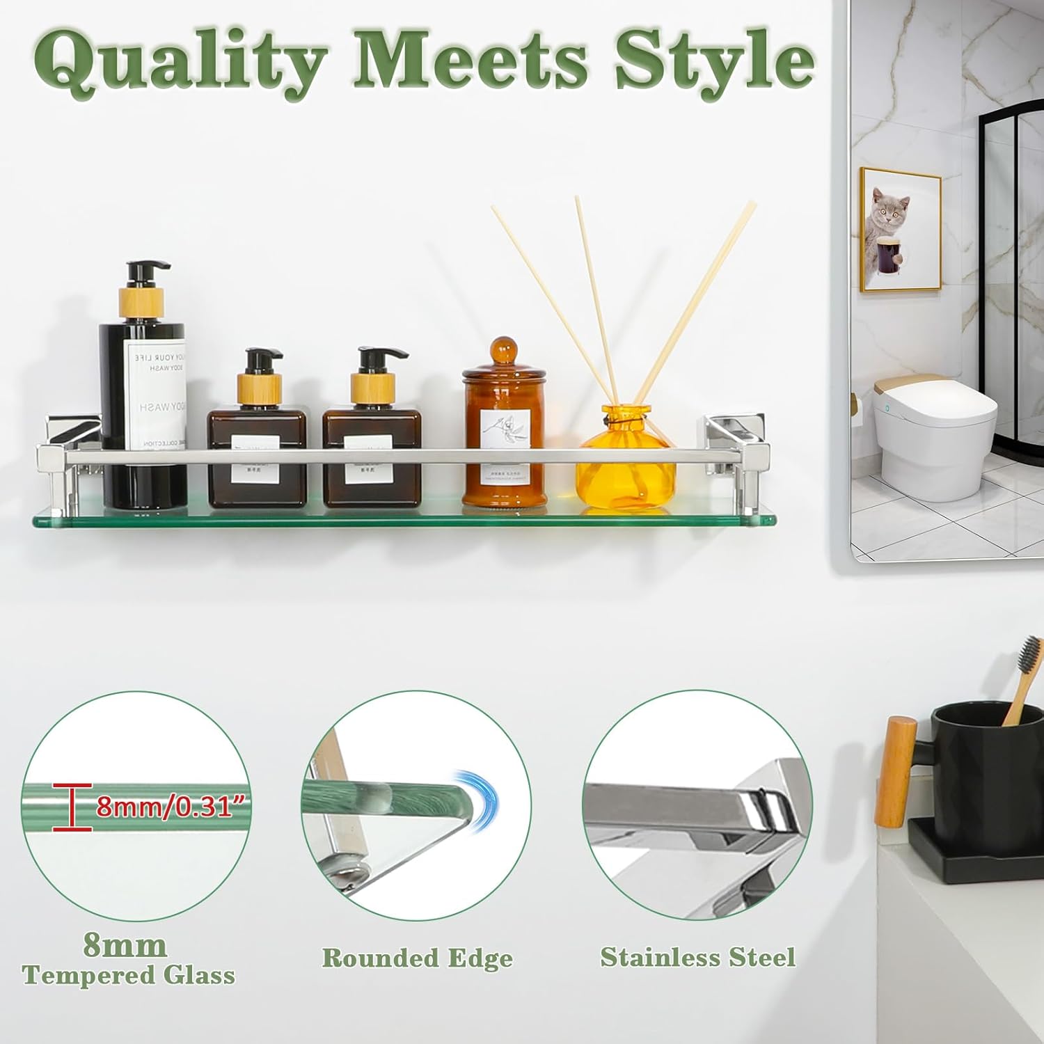 - VERSATILE INSTALLATION:These glass shelving is easy to install with included hardware, suitable for a variety of settings including bathrooms, kitchens, and living rooms