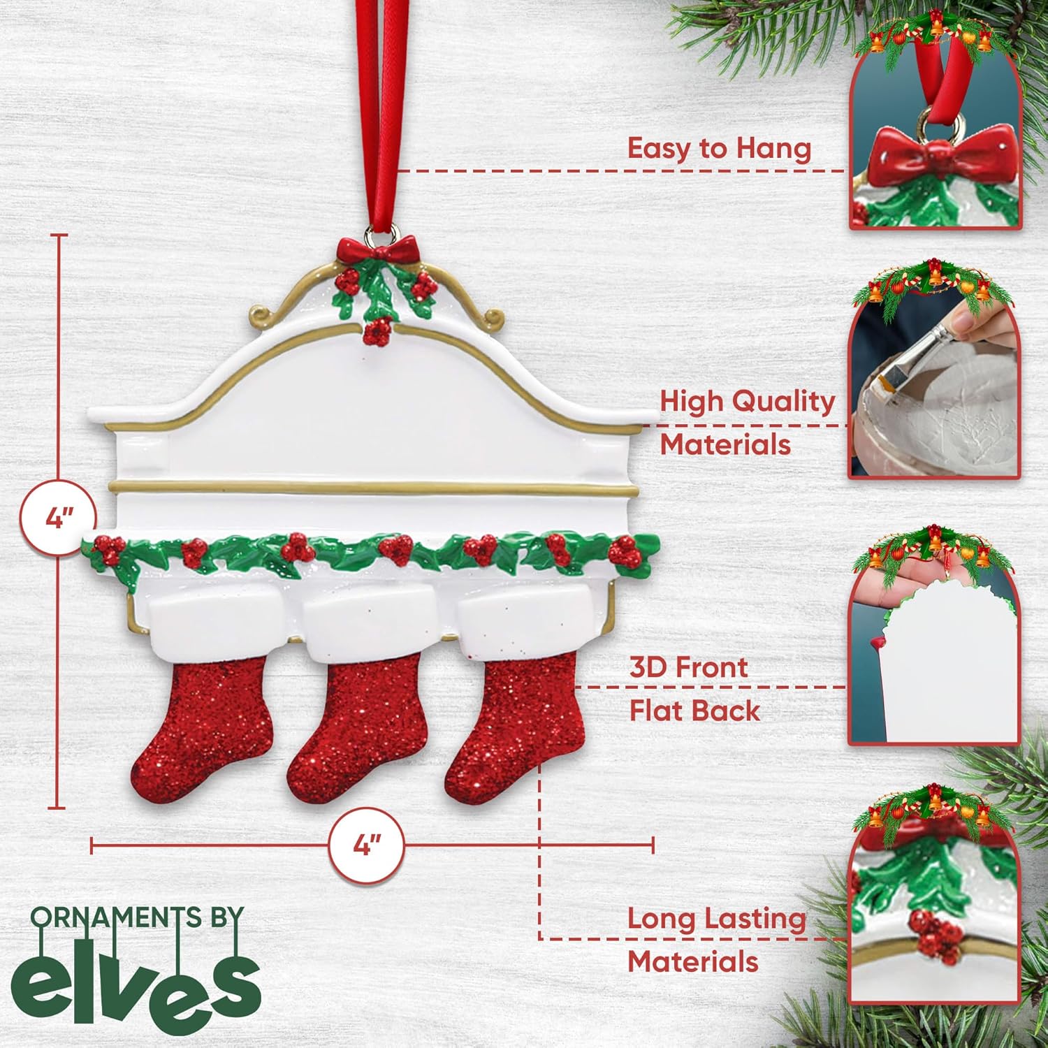 3D White Mantle Family of 3 Christmas Ornament 2025 Personalized Family Christmas Ornaments 2025 | Garland Fireplace Personalized Tree Ornaments Customizable Gifts Red Stockings of Three Ornament
