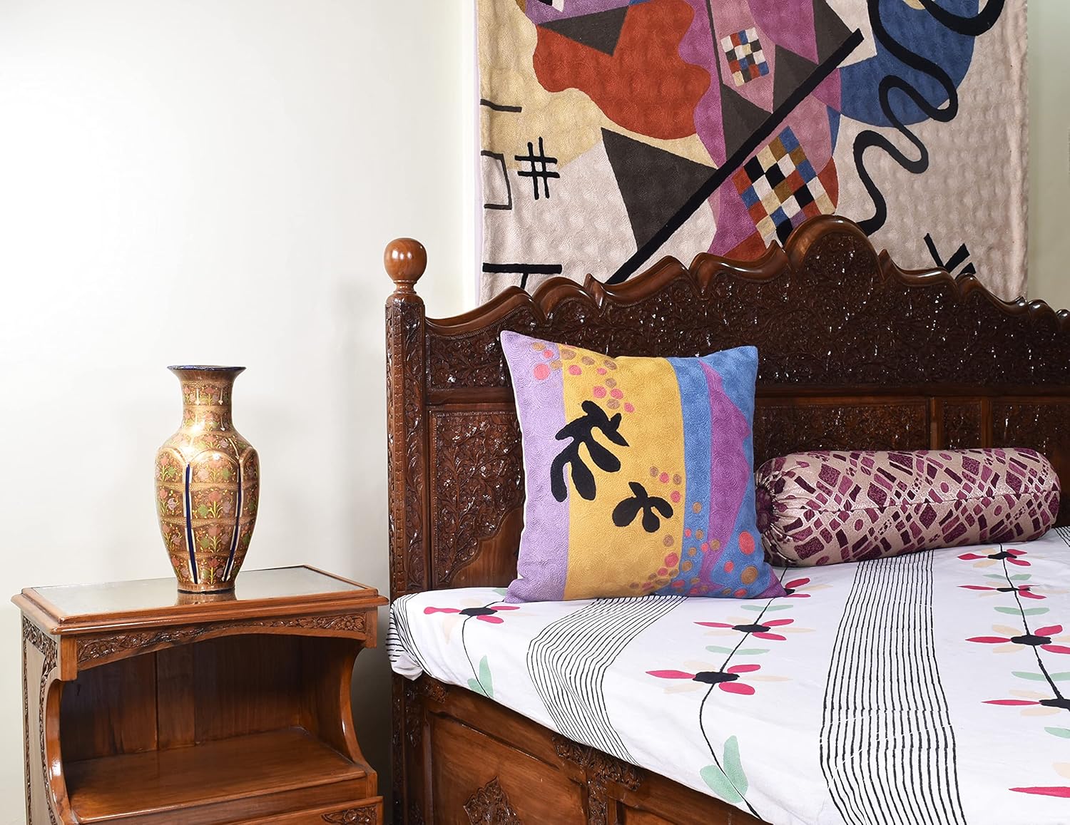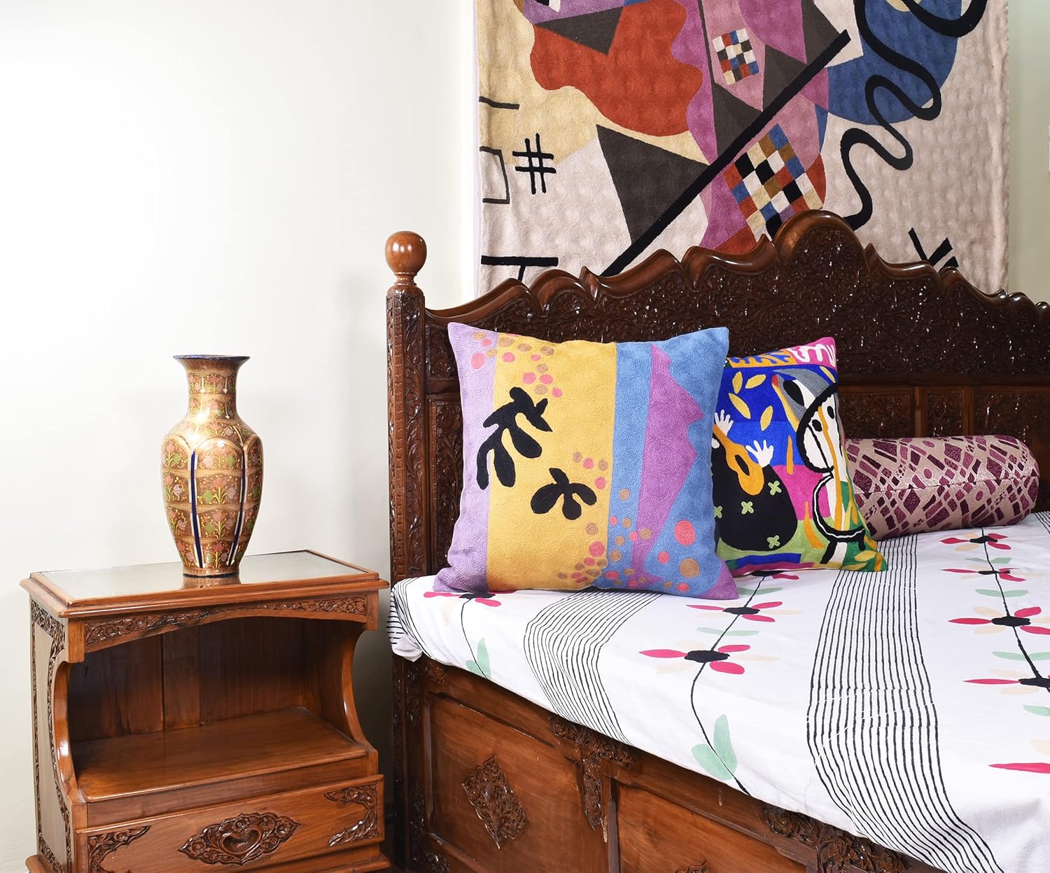 Matisse Gold Pillow Cover Purple Modern Pillowscase Chair Cushion Abstract Farmhouse Flower Outdoor Mid Century Hand Embroidered Wool Size 18x18
