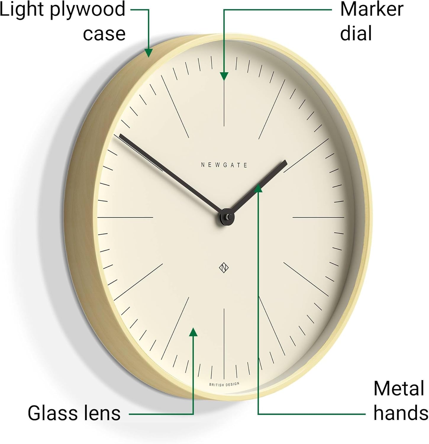 NEWGATE® Mr Clarke Wall Clock | Large Scandi Inspired Plywood Clock | 16 inch | Pale Wood case with Marker dial | Modern Minimalist Design for Kitchen, Living Room or Office