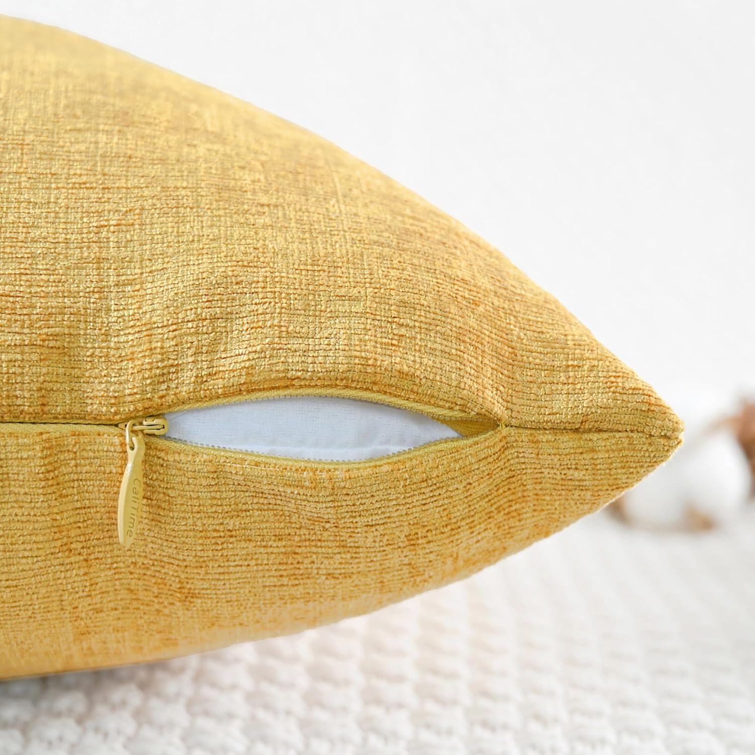 CaliTime Throw Pillow Covers Decorative 20 X 20 Inches Pack of 2 Cozy Chenille Cushion Cases for Couch Sofa Bed Living Room Home Gold
