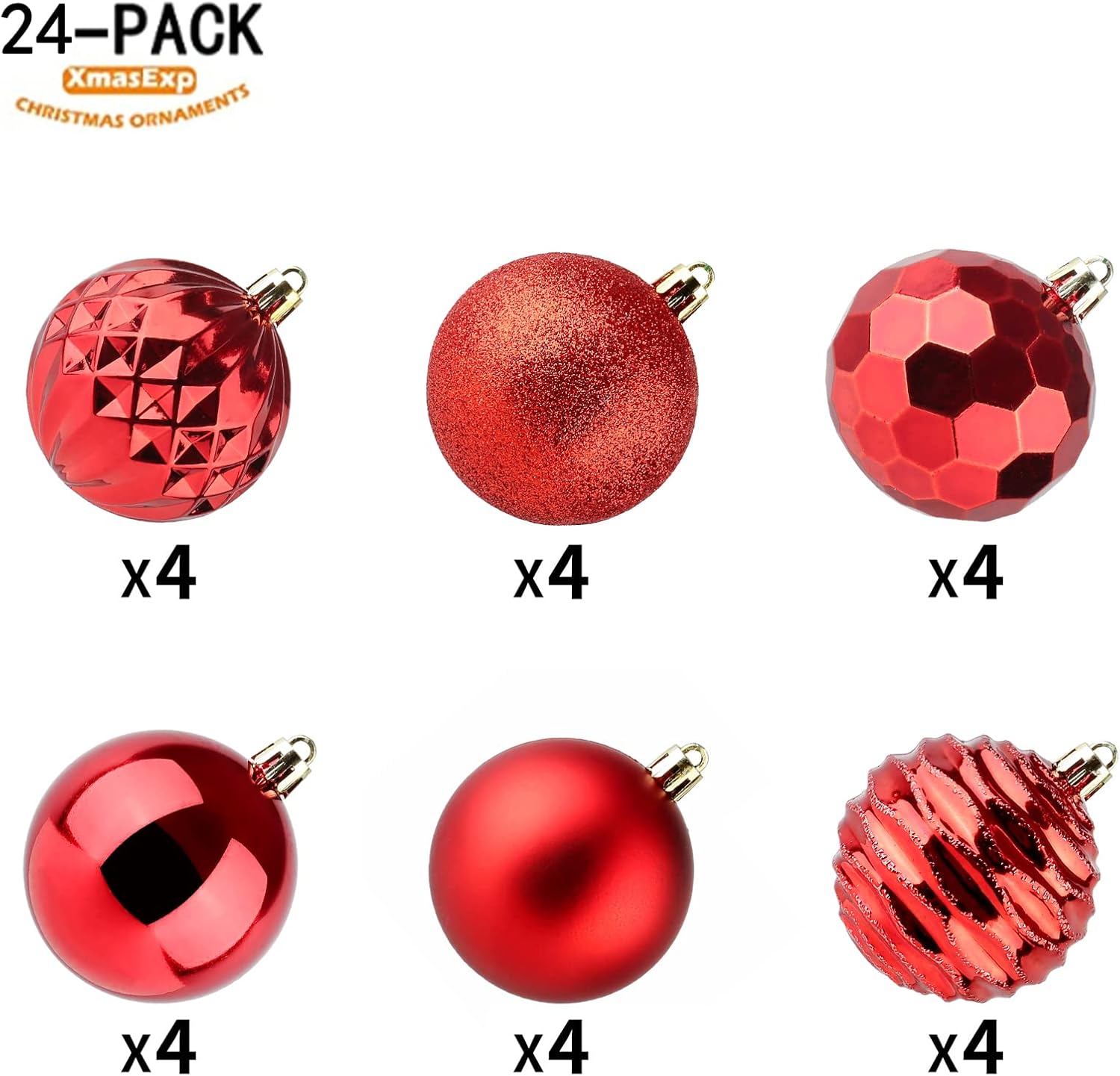 - UNIQUE DESIGN -- 2.36" Small red christmas balls are done in 4 special finishes.Each barrel contains 24 pieces, it's your call to make Christmas season more memorable and unique