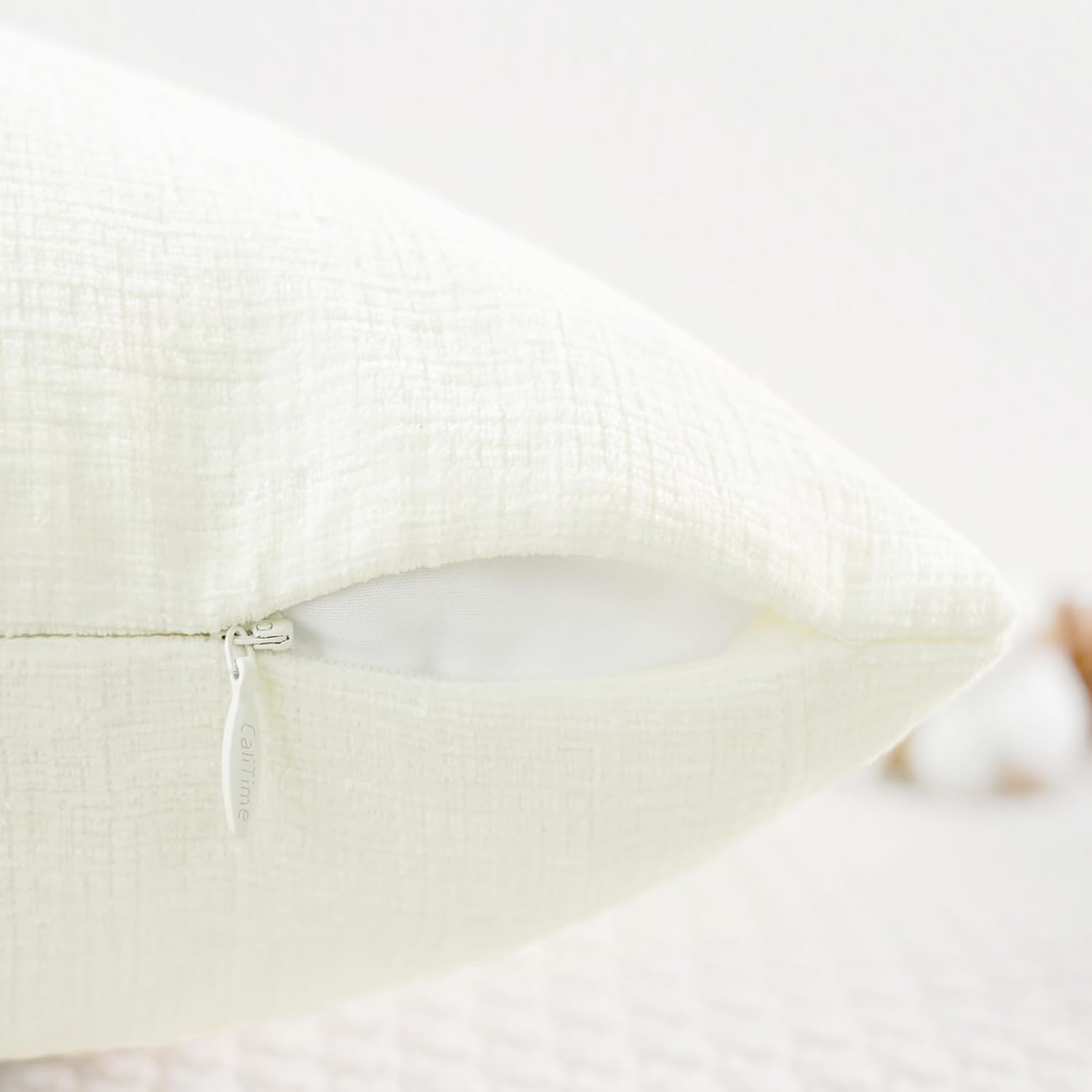 CaliTime Throw Pillow Covers Decorative 16 X 16 Inches Pack of 2 Cozy Chenille Cushion Case for Couch Sofa Bed Living Room Home Cream