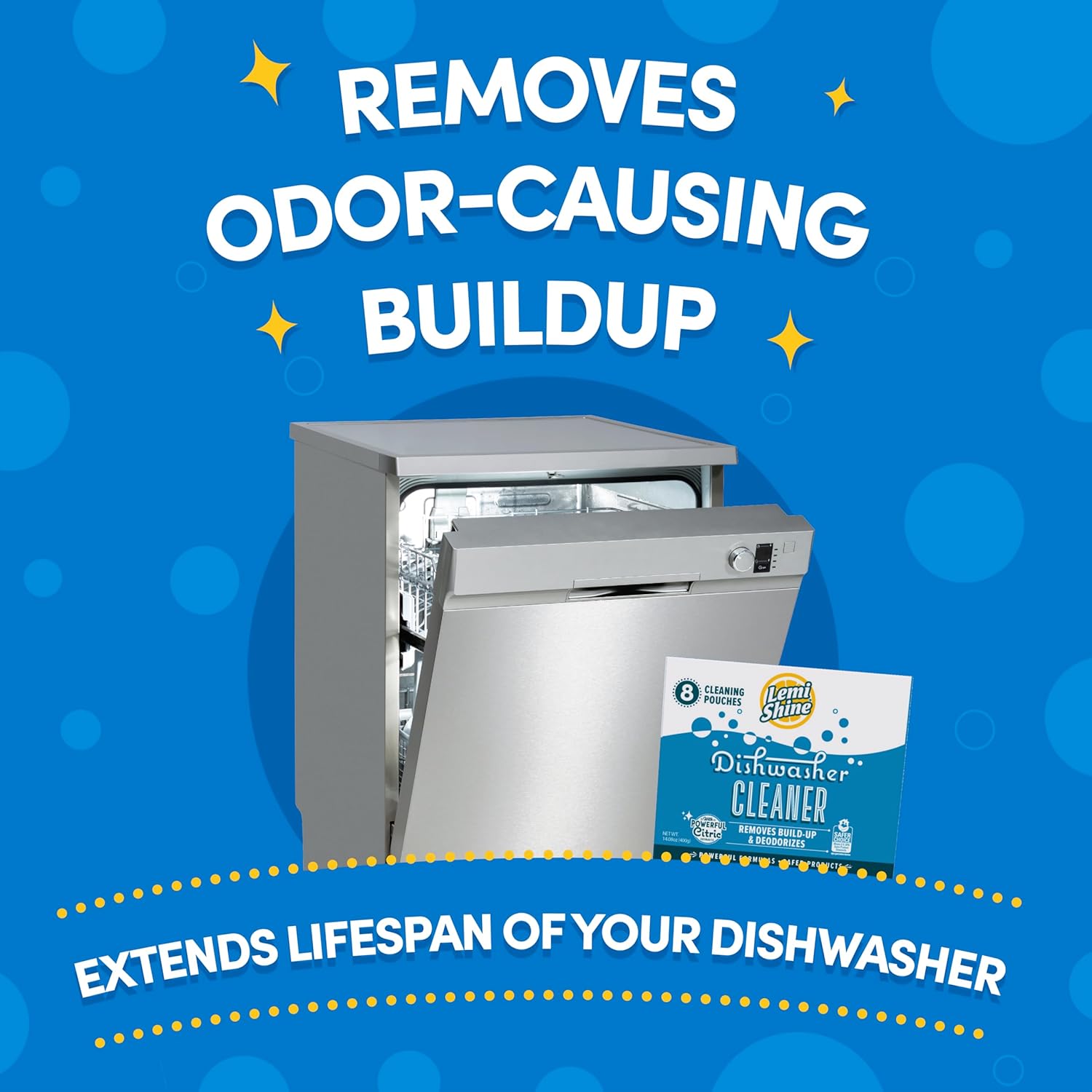 - POWERED BY CITRIC ACID: Harsh chemicals and additives can harm your dishes and home appliances. Lucky for you, this dish washer machine cleaner is an all-natural, household cleaning solution powered by citric acid, leaving it sparkly clean and smelling lemony fresh!