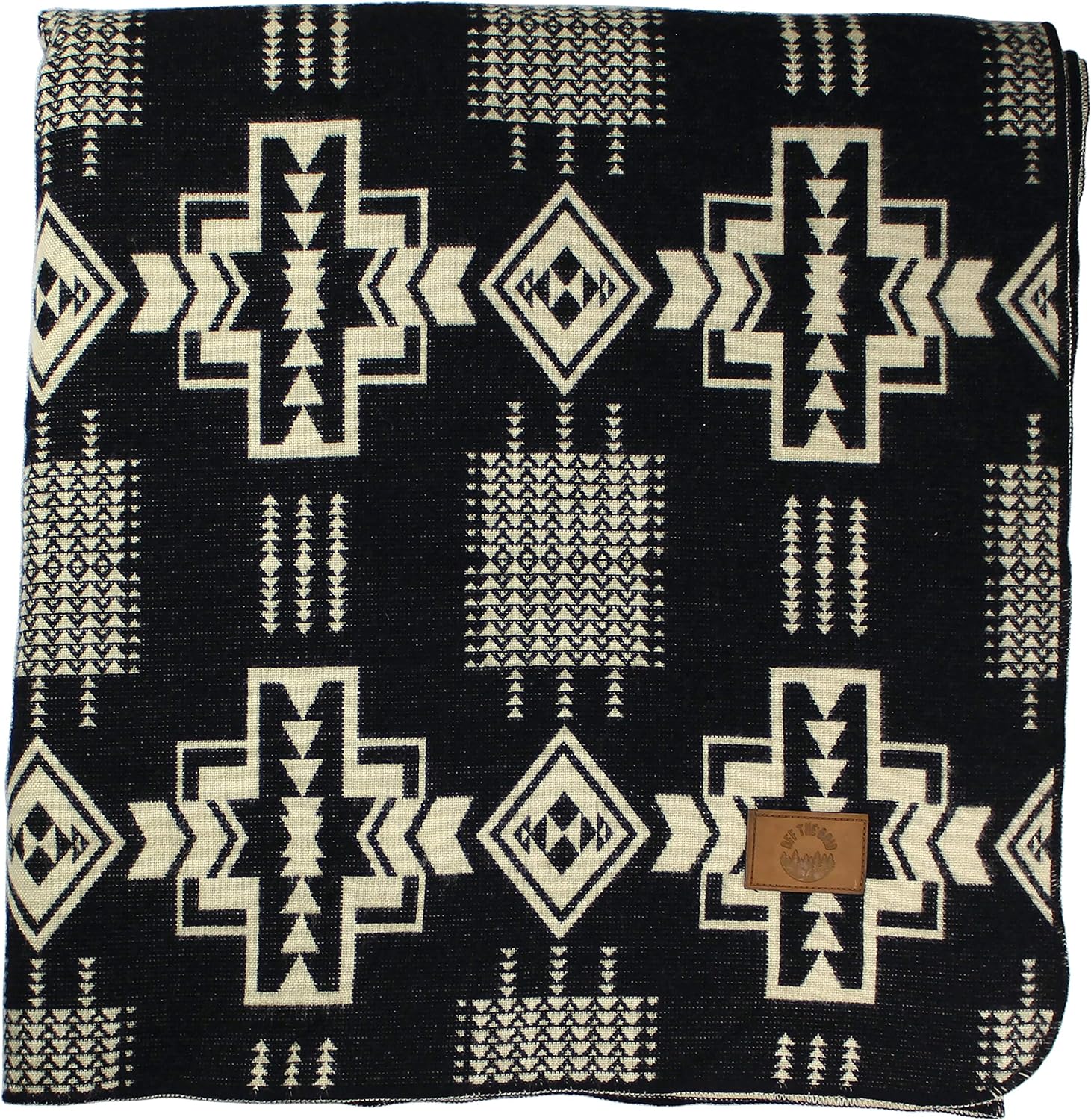 Inca Aztec Throw, Queen, King Blanket | Southwest Indian Navajo Boho Style | Native Cover for Camping, Bedding, Couch, Vanlife | Faux Alpaca, Lightweight, Hypoallergenic (Obsidian Black, Queen)