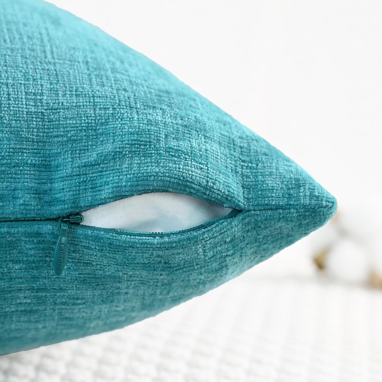 CaliTime Throw Pillow Covers Decorative 22 X 22 Inches Pack of 2 Cozy Chenille Cushion Cases for Couch Sofa Bed Living Room Home Lake Blue
