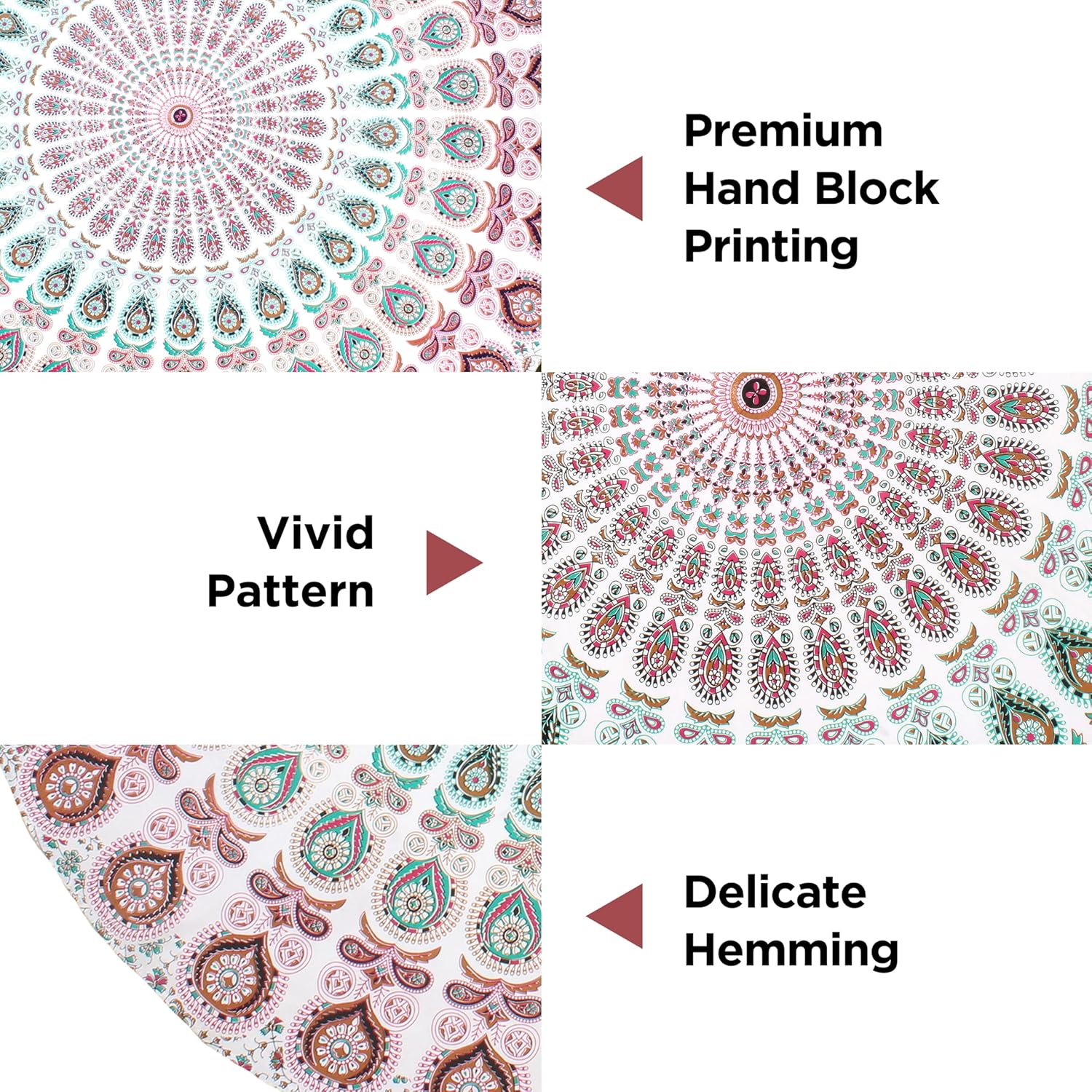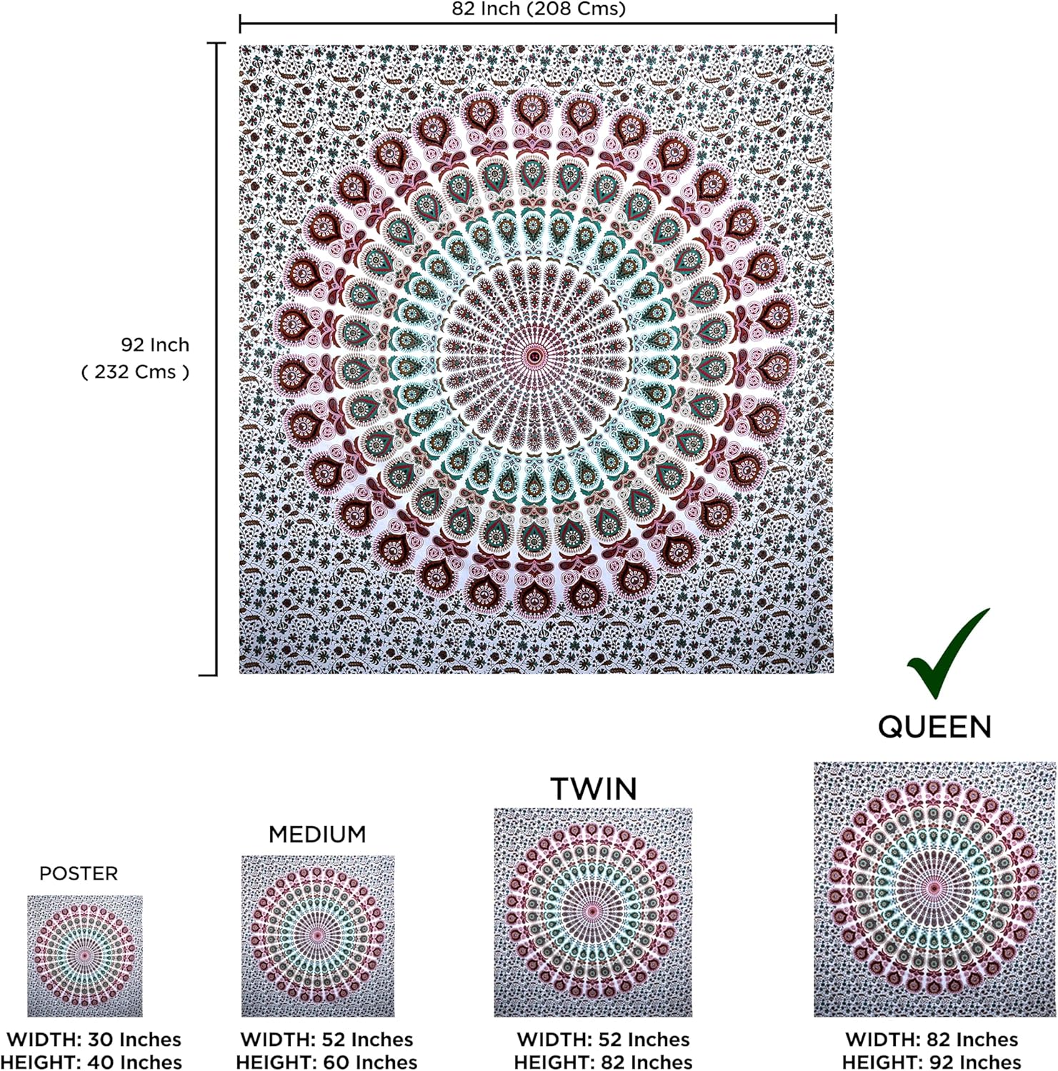 - MATERIAL & SIZE : Mandala boho Tapestry is made of 100% cotton fabric, made and printed in India, With delicate hand sewing, easy to hang, the edges are neat and finished and used for both indoor and outdoor purpose, size QUEEN 210 X 220 CMS