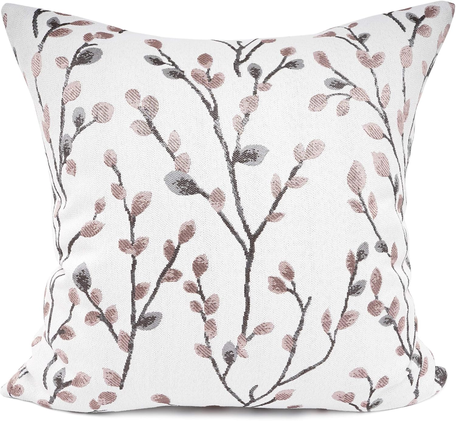 YOUR SMILE Classical Embroidery Jacquard Pink Leaf Pattern Square Decorative Throw Pillow Case Cushion Cover 18x18 inch