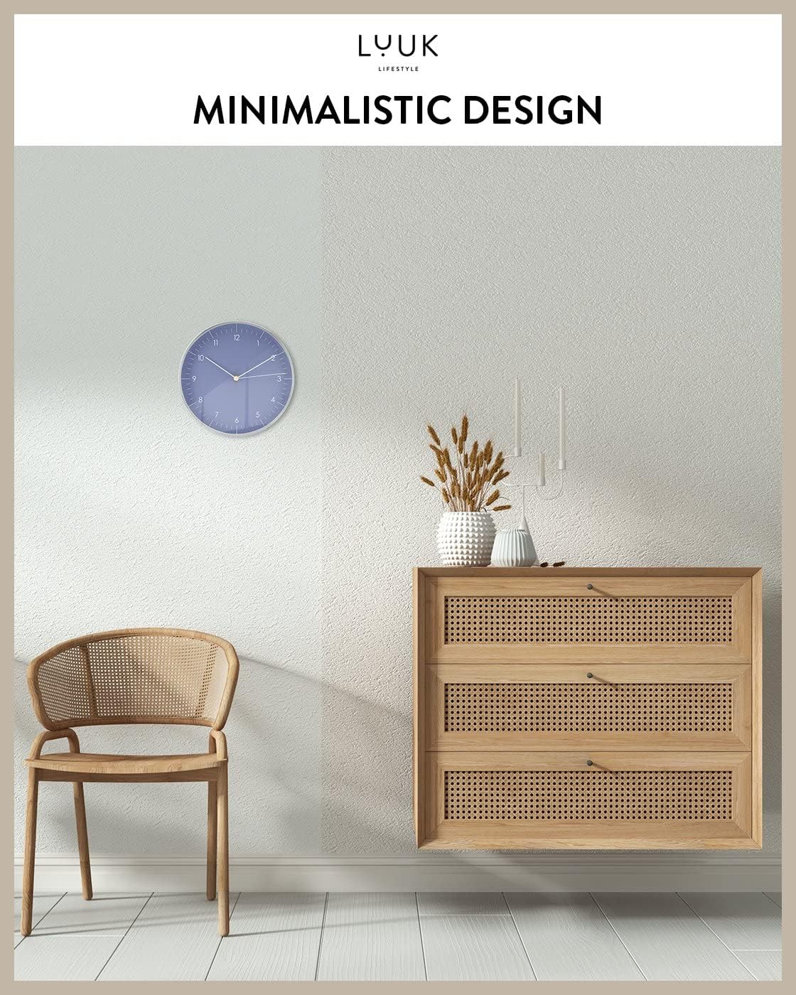 LUUK LIFESTYLE Minimalist Wall Clock with Silent Movement, no Ticking, Modern Design, Kitchen Clock, Decoration and Gift idea, in Blue and Silver