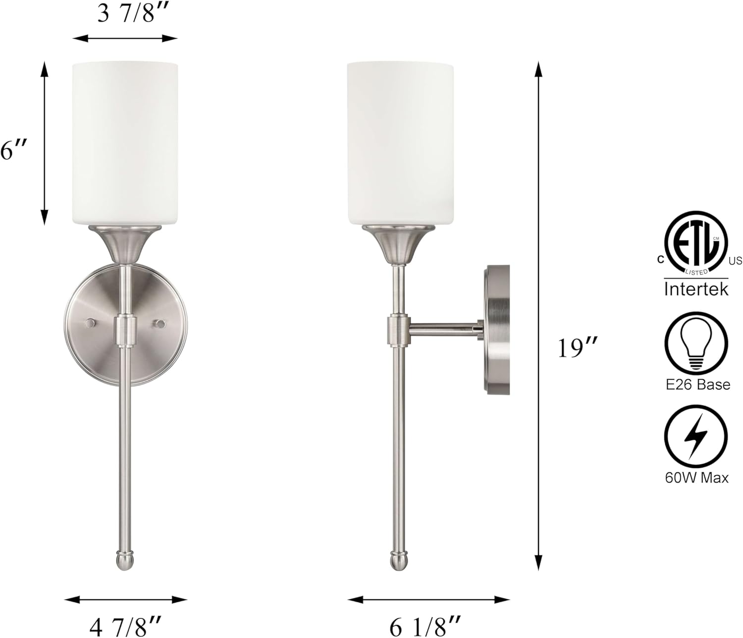 - DIMENSIONS: W: 4-7/8" x H: 19" extends 6-1/8" from the wall