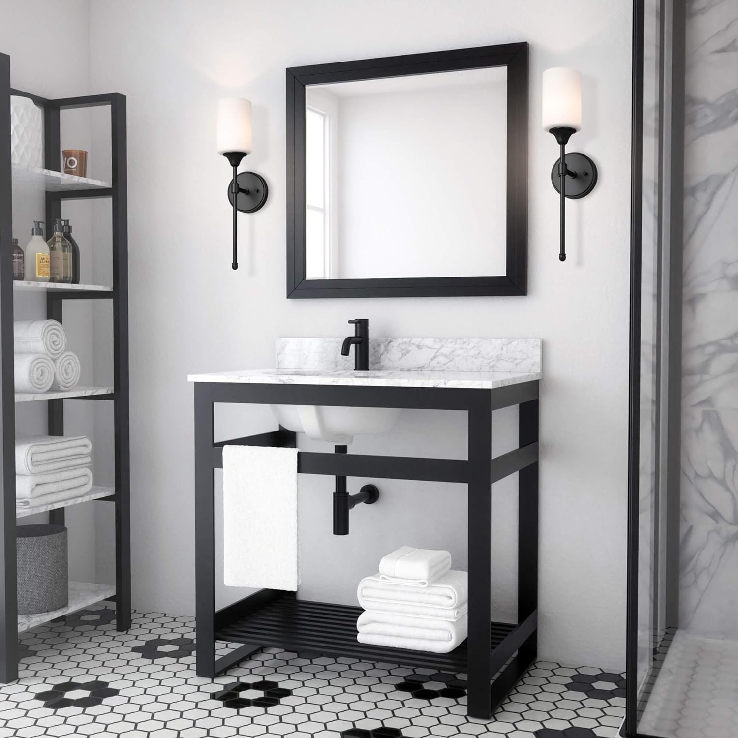 - MEDIUM BASE SOCKET: This black bathroom sconce suggest to takes one maximum 60 watt Medium base bulbs (incandescent, CFL or LED compatible). Bulbs not included.