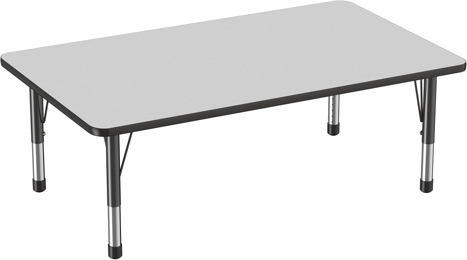 FDP Rectangle Activity School and Classroom Kids Table (36 x 60 inch), Toddler Leg, Adjustable Height 15-24 inches - Gray Top and Black Edge