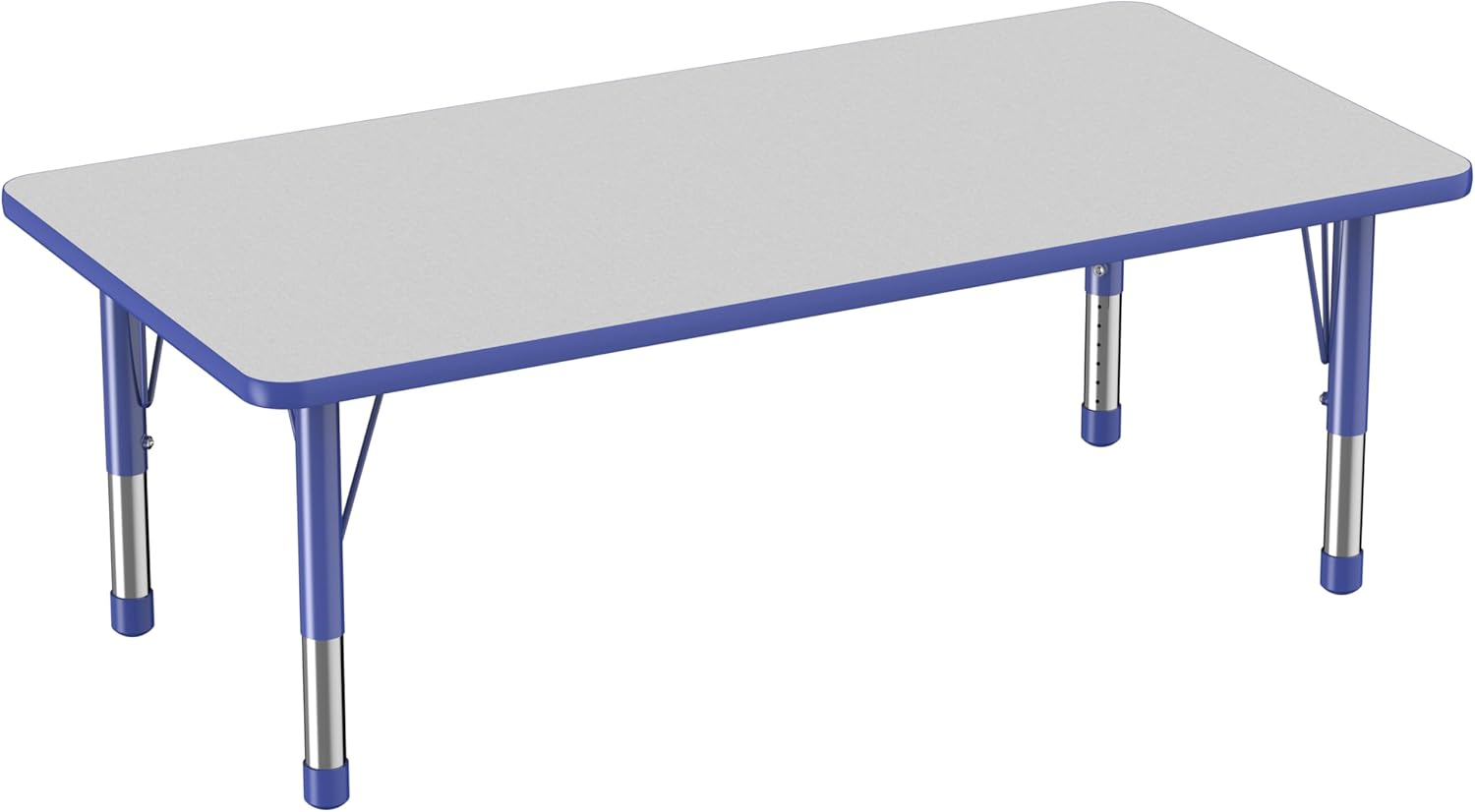 FDP Rectangle Activity School and Classroom Kids Table (30 x 60 inch), Toddler Legs, Adjustable Height 15-24 inches - Gray Top and Blue Edge