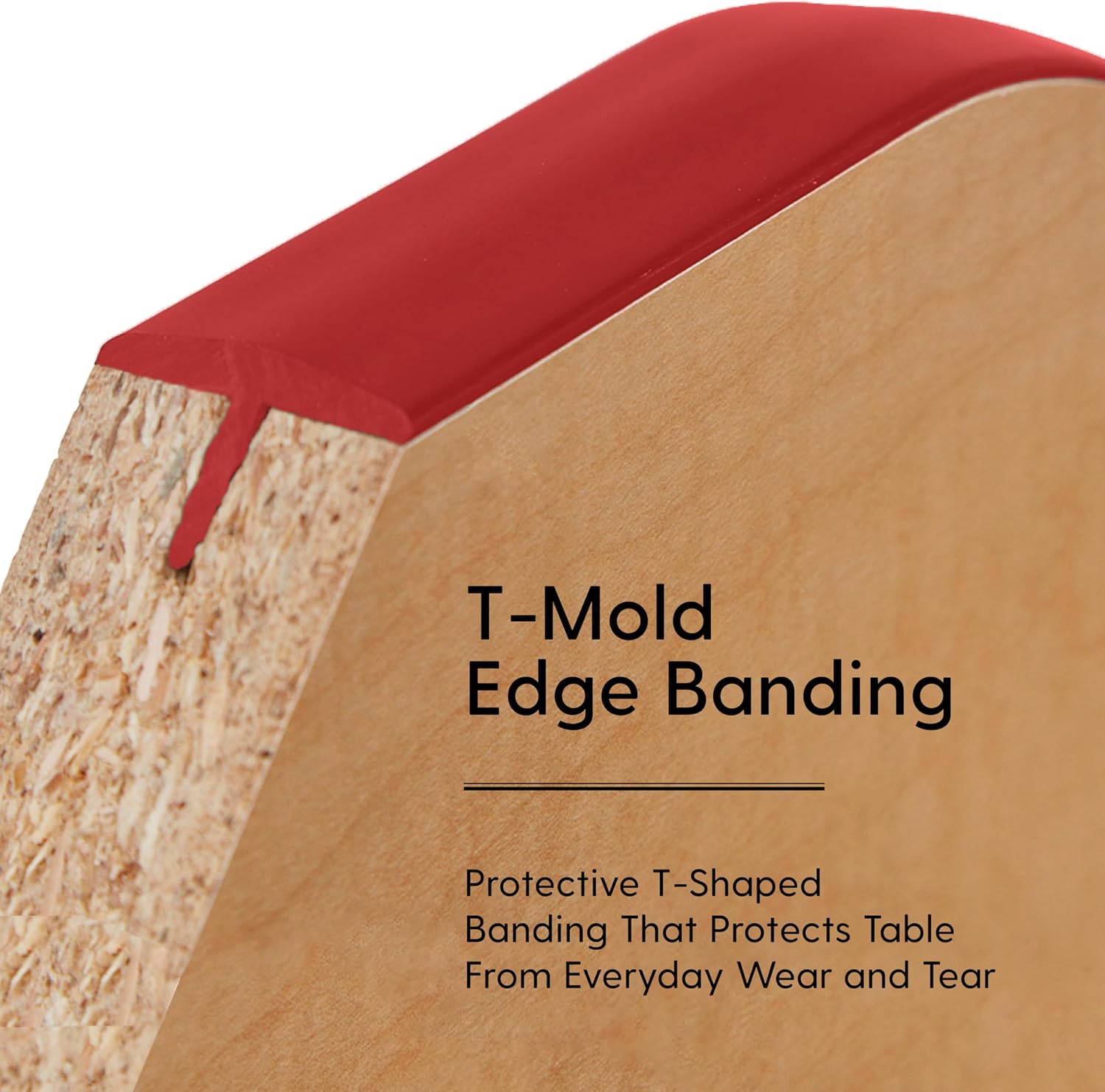 FDP Rectangle Activity School and Classroom Kids Table (24 x 60 inch), Chunky Toddler Legs, Adjustable Height 15-24 inches - Maple Top and Red Edge