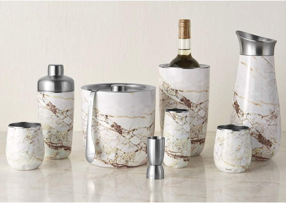 - TRIPLE-LAYERED INSULATION: S’well 68oz Ice Bucket with Tongs. Triple-layered, vacuum-insulated stainless steel construction. Exclusive Therma-S’well Technology keeps ice colder for longer. Includes tongs for easy ice grabbing. Sleek and beautifully crafted.
