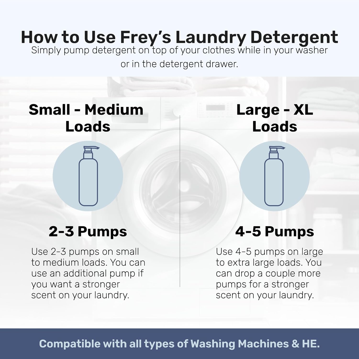 - LONG LASTING DETERGENT THAT'S SAFE FOR YOU - FREY's powerful concentrated laundry detergent liquid is formulated to last a long time and is also made without harsh ingredients, making it safe for you and your clothes. The perfect pairing to our fabric softener, the FREY detergent includes ingredients like Cedarwood, Oakmoss and Amber and is HE compatible.