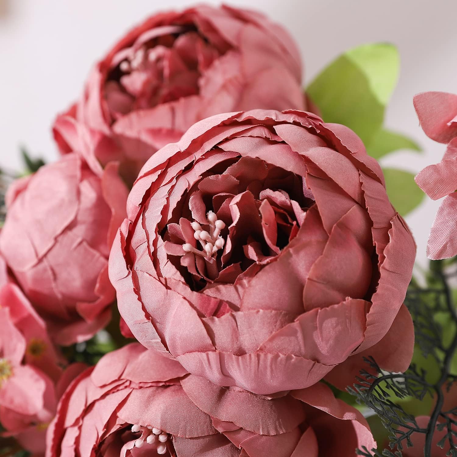 Duovlo Artificial Peony Silk Flowers Fake Flowers Vintage Wedding Home Decoration,Pack of 1 (Rosy Brown)