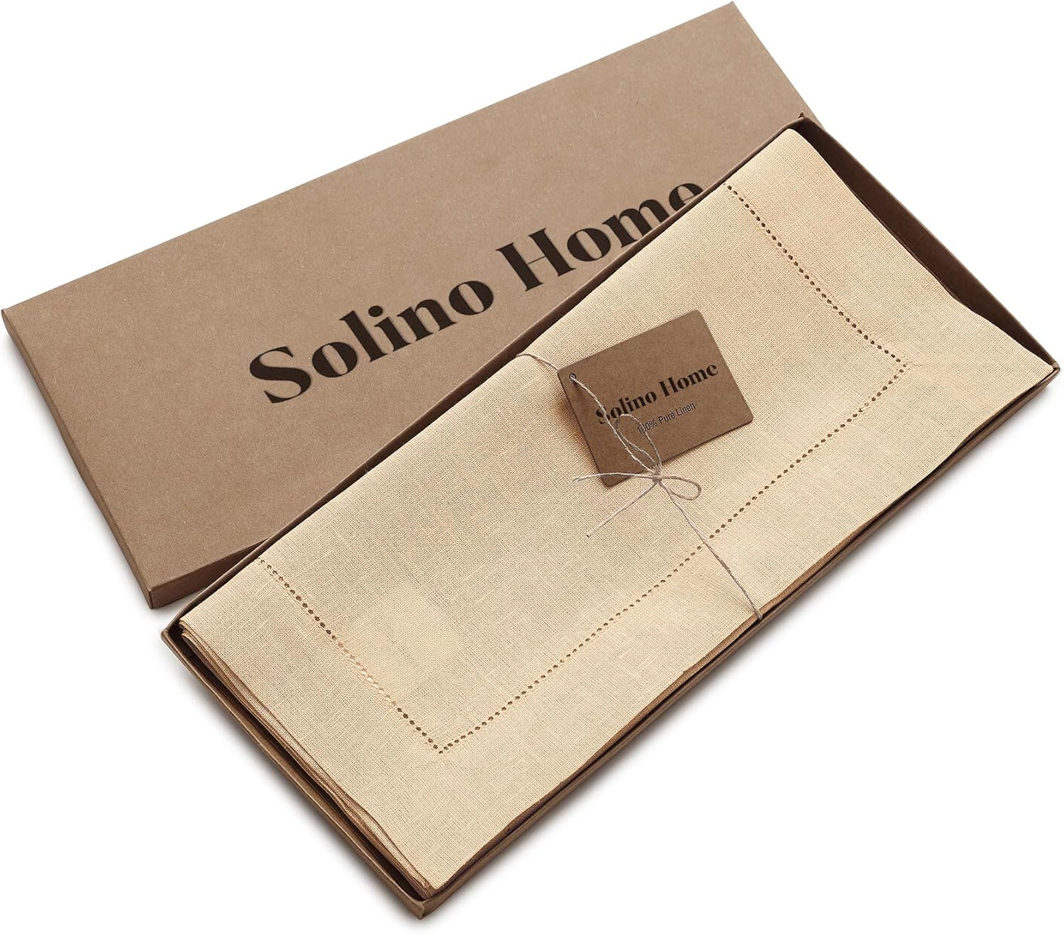Solino Home Linen Beige Table Runner 108 Inches Long - 100% Pure Linen 14 x 108 Inch Table Runner for Fall, Autumn, Thanksgiving - Classic Hemstitch