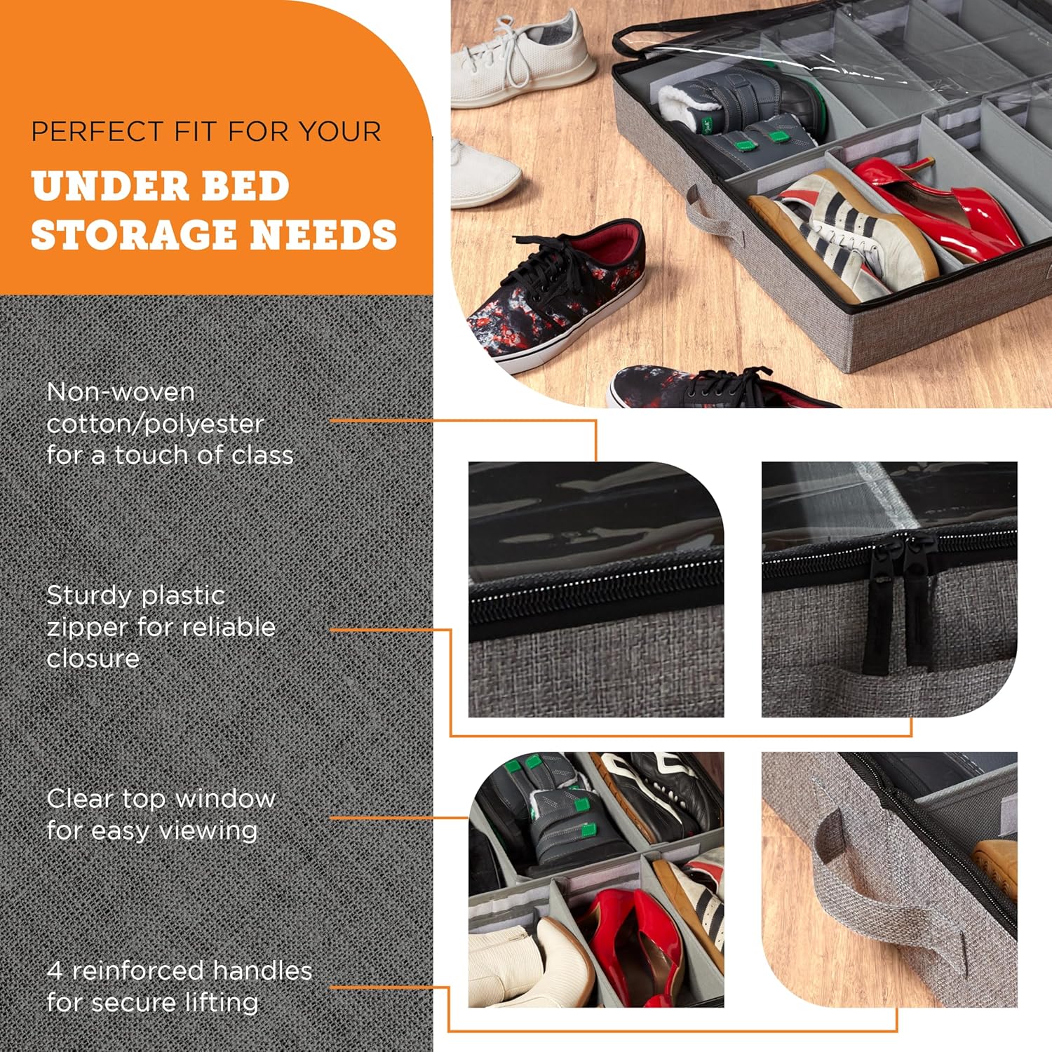 - EASILY MANEUVERABLE: Pull this under bed storage out effortlessly with its reinforced handles on the side. The low-friction fabric on the bottom lets it glide over the carpet and even hardwood floors with ease.