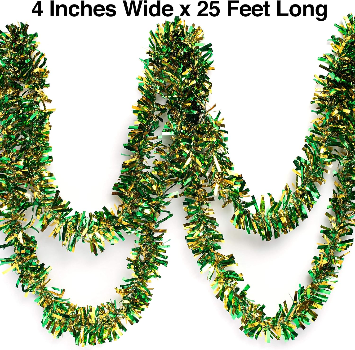 Anderson's Green & Gold Metallic Tinsel Twist for Trailer Or Golf Cart, 4 inches Wide x 25 ft Long, Christmas, Birthday, Mardi Gras, Graduation and Holiday Garland Decor for Parties and Parades
