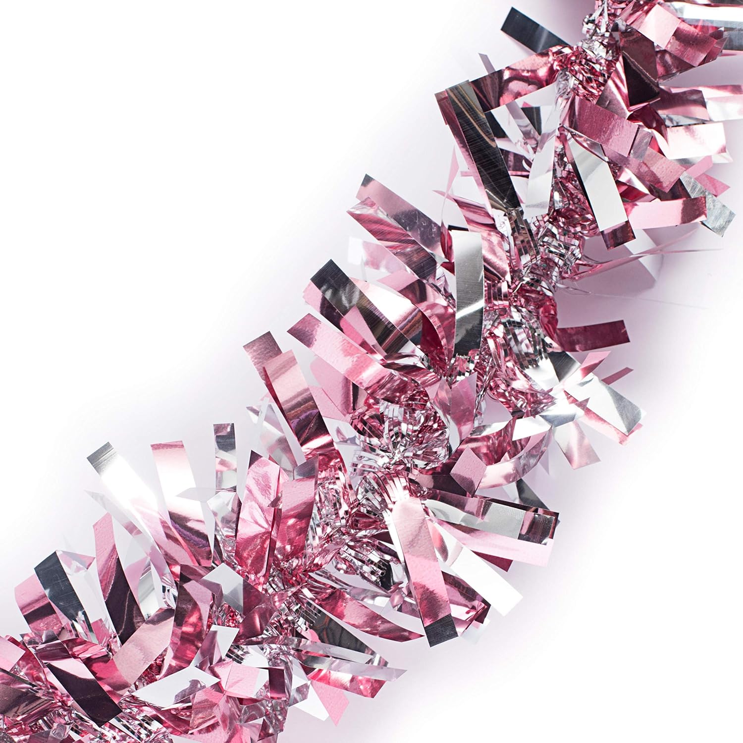 Anderson's Light Pink & Silver Sparkle Glitter Metallic Tinsel Twist for Trailer Or Golf Cart, 4 inches Wide x 25 ft Long, Christmas, Patriotic and Holiday Garland Decor for Parties and Parades