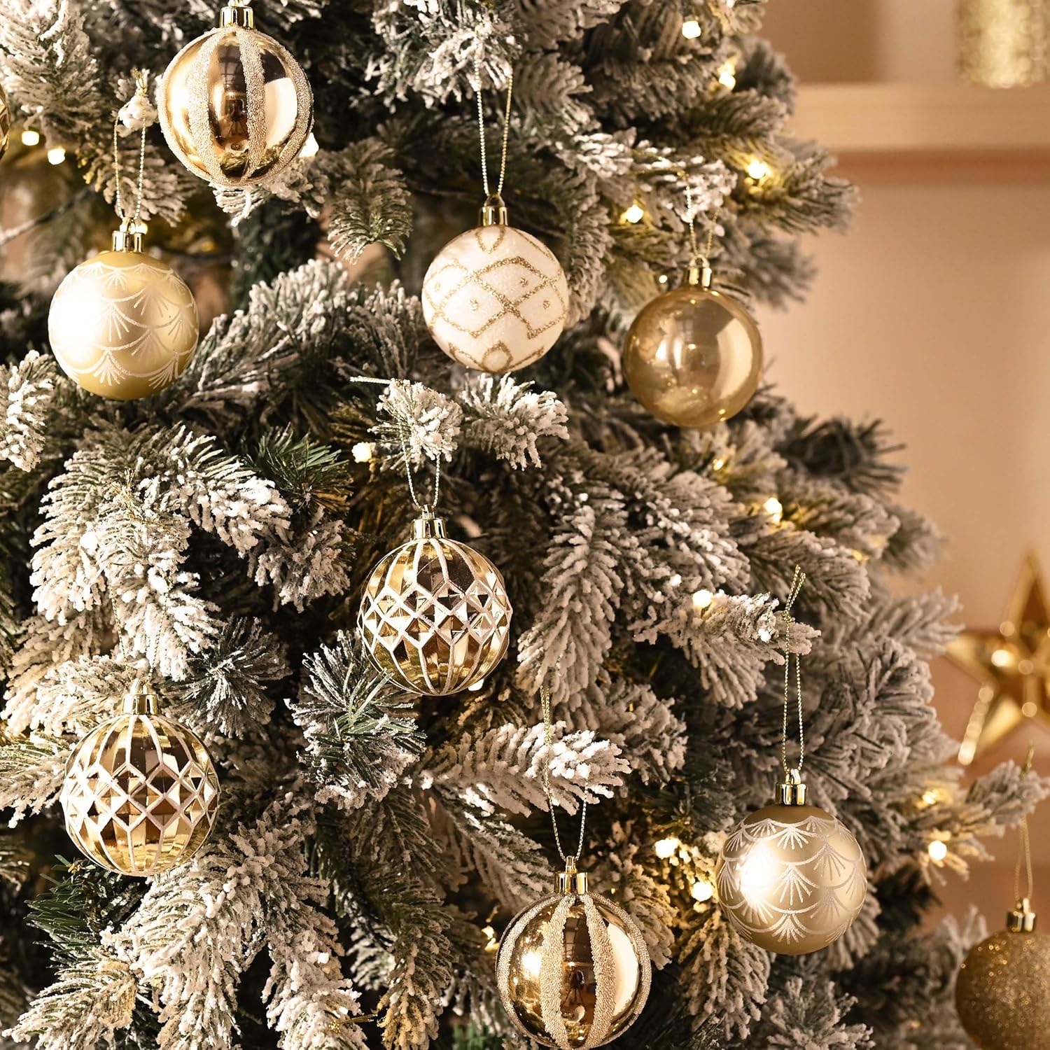 Valery Madelyn Christmas Ornaments Set, 30ct 2.36 Inches White and Gold Shatterproof Christmas Tree Decorations Ball Ornaments Bulk, Elegant Hanging Ornaments for Xmas Holiday Party Decor