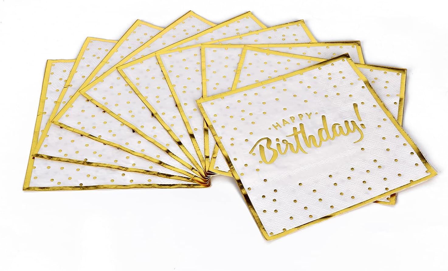 Gatherfun Birthday Party Supplies Napkins Disposable Paper Napkins with Gold Stamping for Adults and Kids Birthday Party(6.5X6.5 in, 3-Ply, 50-Pack)