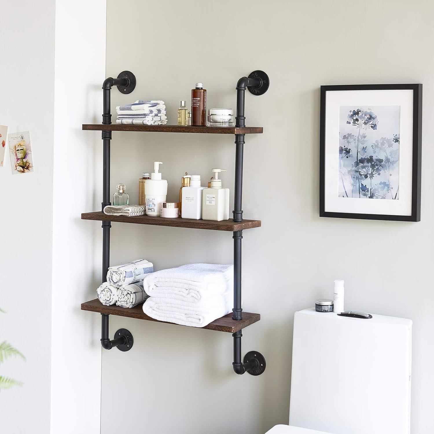 - HIGH QUALITY WALL SHELF: This pipe shelf constructed with particleboard and sturdy metal pipe, that bears high weigh, which is beneficial for storing items. The appearance of the product is high temperature painted and retro design, it is not easy to rust.