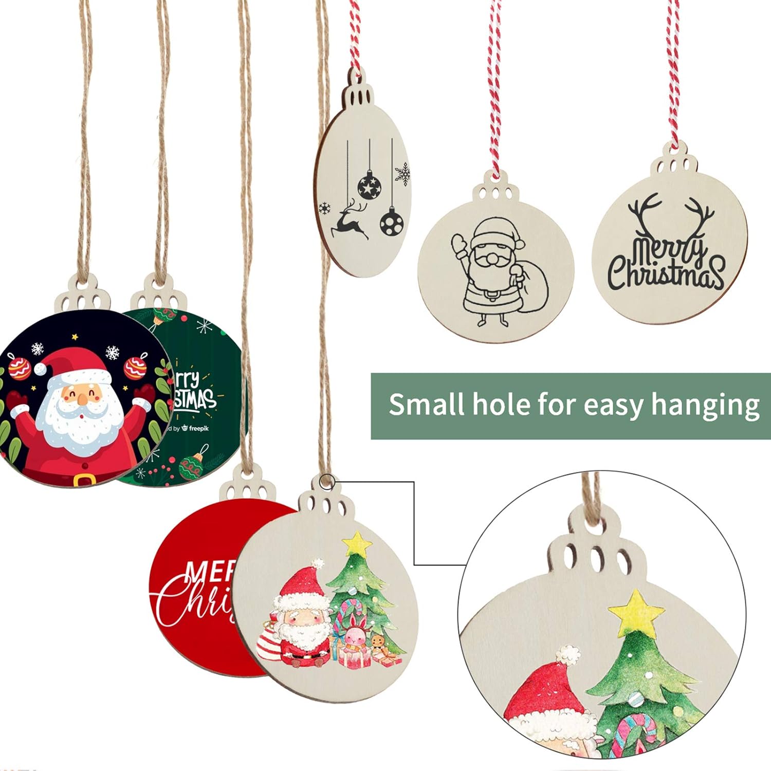 - Easy to Use: Both sides are sanded to a smooth surface ready to paint, stain, write, and color. Every wooden slice with a pre-drilled small hole and comes with twine is easy to hang and decorate your Christmas tree