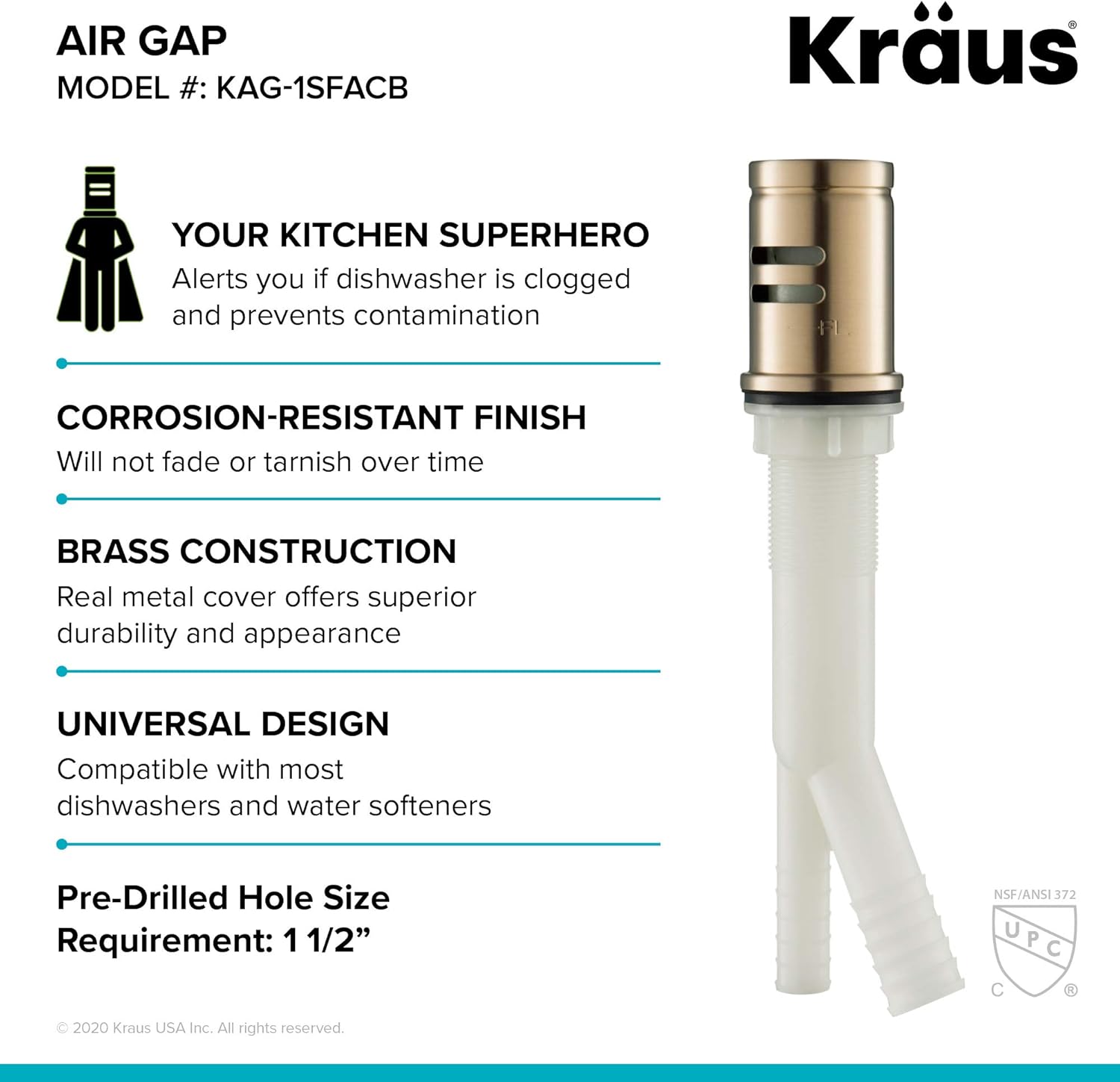 - AIR GAP KIT includes durable ABS plastic body and solid brass cover for a lifetime of reliable performance β SOLID BRASS COVER offers superior durability and a high-end appearance