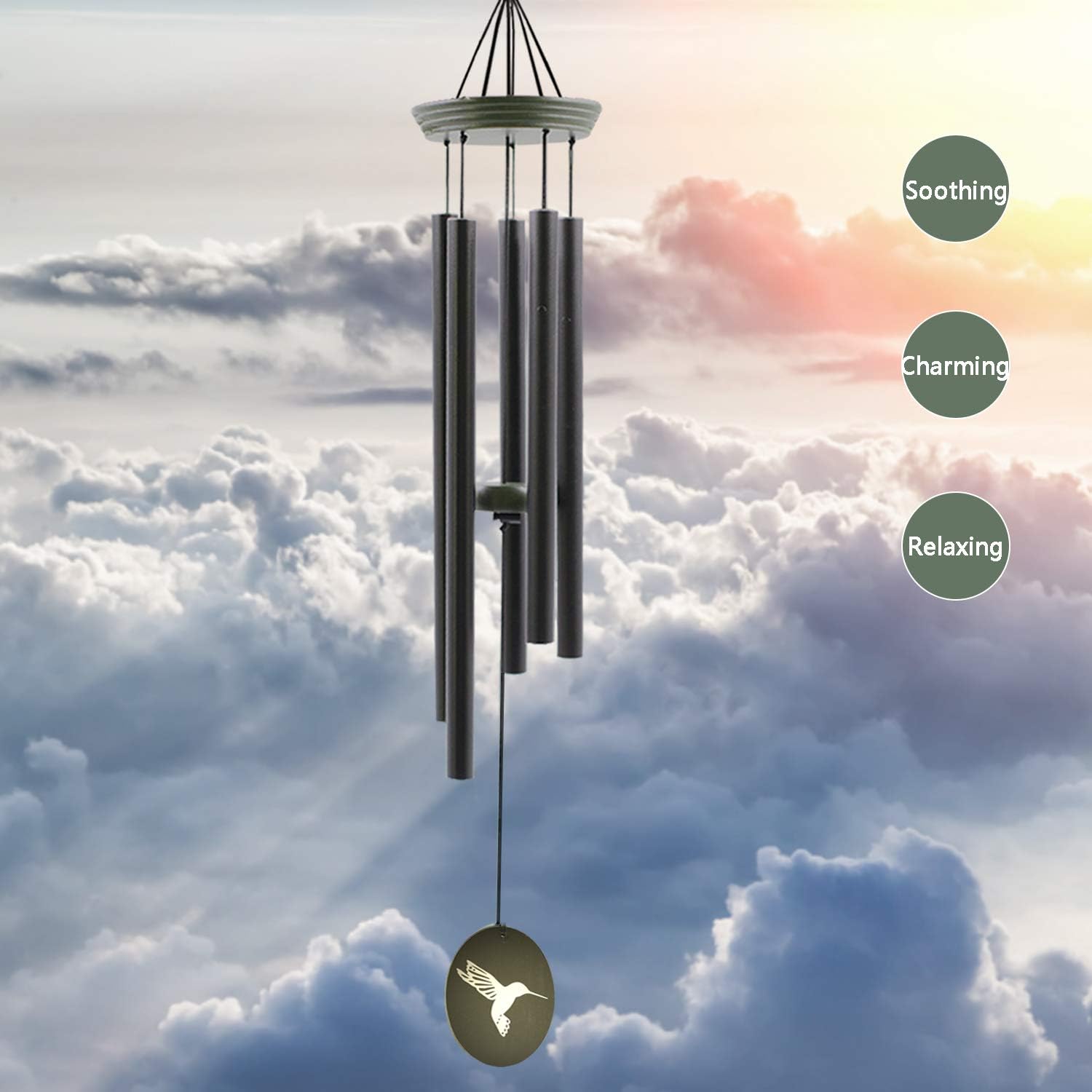 - π³ Unique Hummingbird Design: Our outdoor wind chimes feature a 33-inch height from hanging hook to bottom wind catcher, with a 5-inch wide suspension platform. The hard aluminum tubes are coated in black matte color, and the longest tube measures 14.5 inches. The catcher is printed with a hummingbird design, adding a touch of elegance to your garden, yard, or patio.