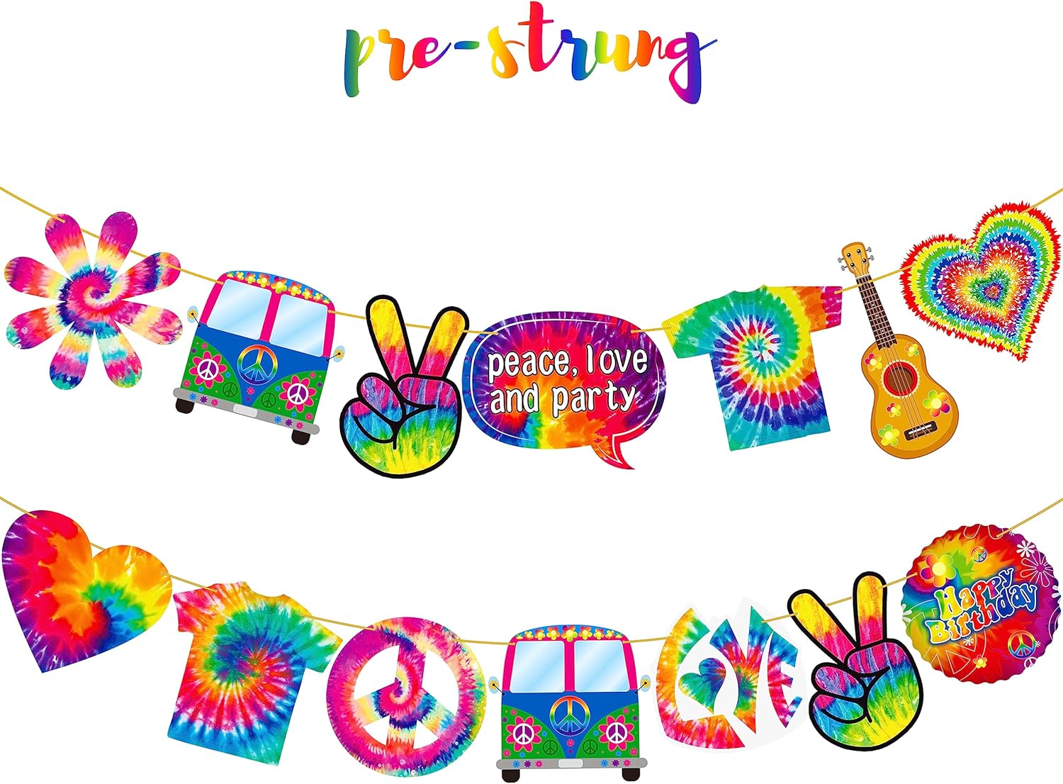 - ❤【Tie dye birthday party supplies】The tie dye birthday party supplies is made of high-ranking card stock, handcrafted & pre-assembled, you can hang this tie dye banner directly on your door, window, wall or wherever you want to decorate,this tie dye party garland is a nice way to save you the time to decorate the tie dye theme party.