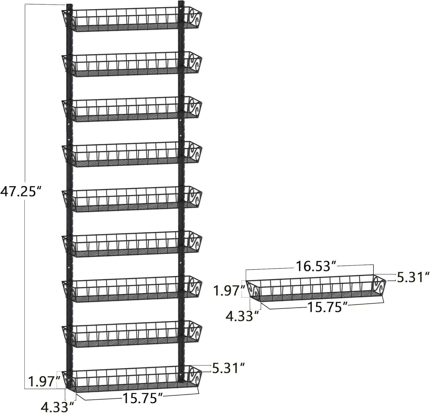 SWOMMOLY Adjustable Wall Mount Spice Rack, 9-Tier Dual-use (Multi-use) Organizer, Black