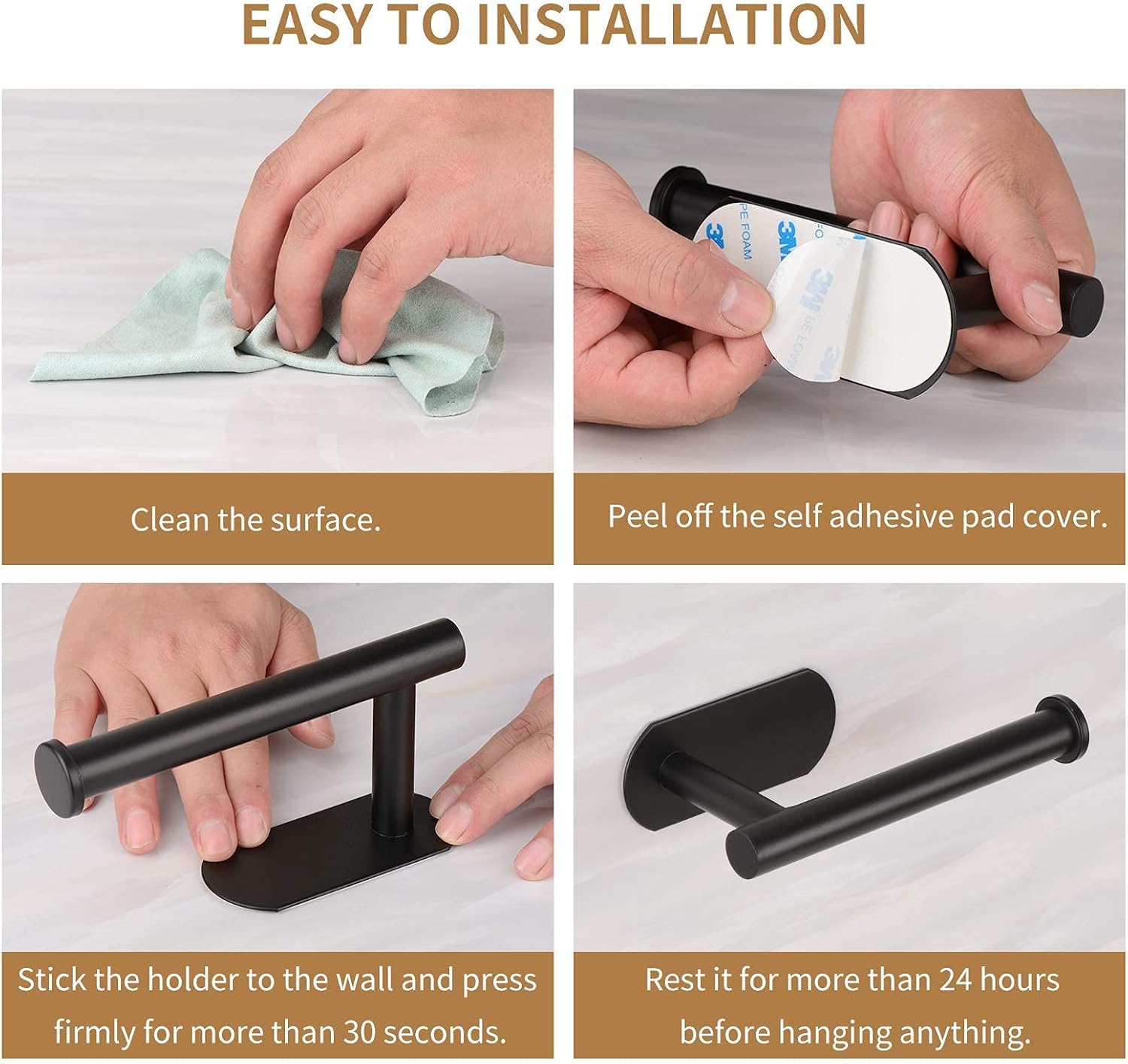 - WHAT'S IN OUR PACKAGE: Includes toilet paper holder, 2 adhesive sheets, installation manual.
