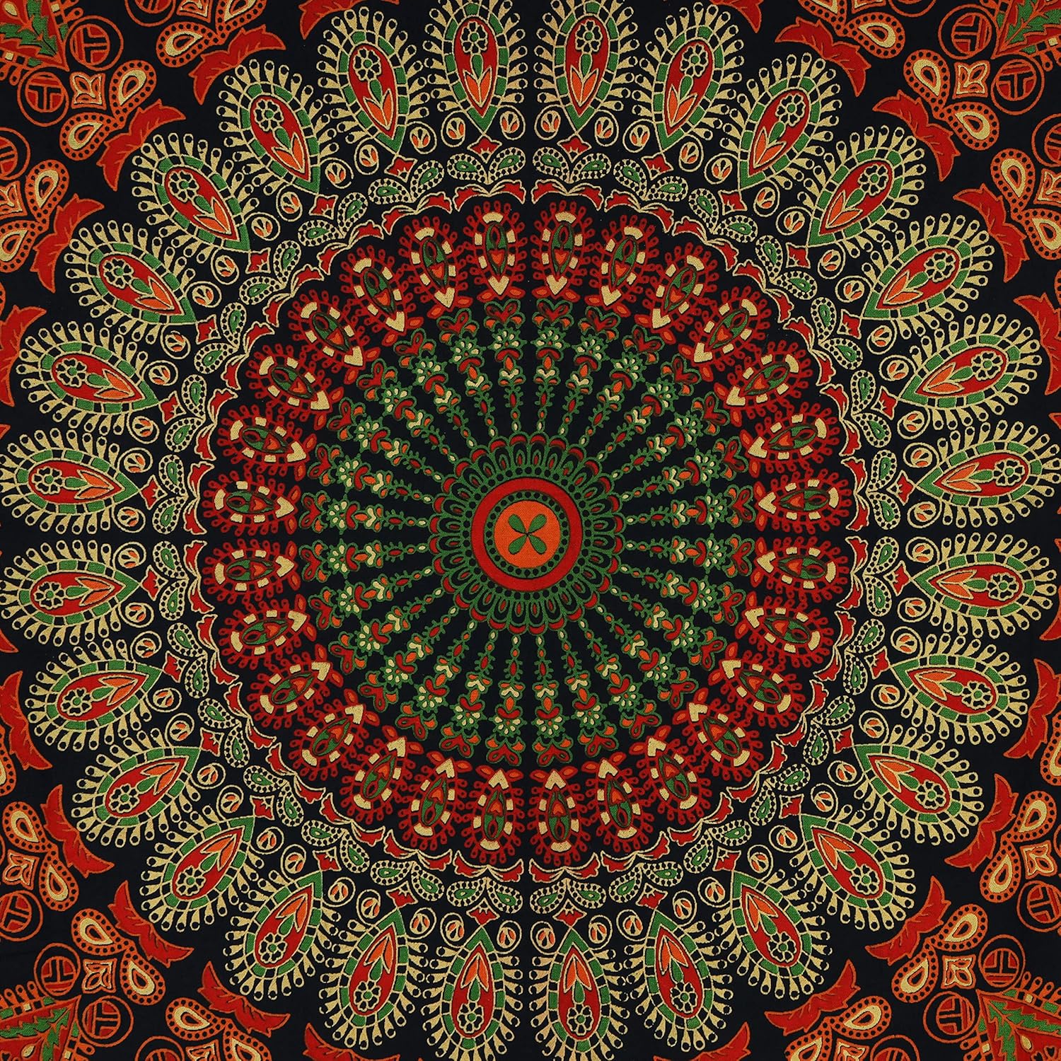 Bless International Handmade Indian hippie Bohemian Psychedelic Peacock Mandala Wall hanging College Dorm Beach Throws Table Cloth Bedding Tapestry (Golden Green, Poster(30x40Inches)(76x101cms))