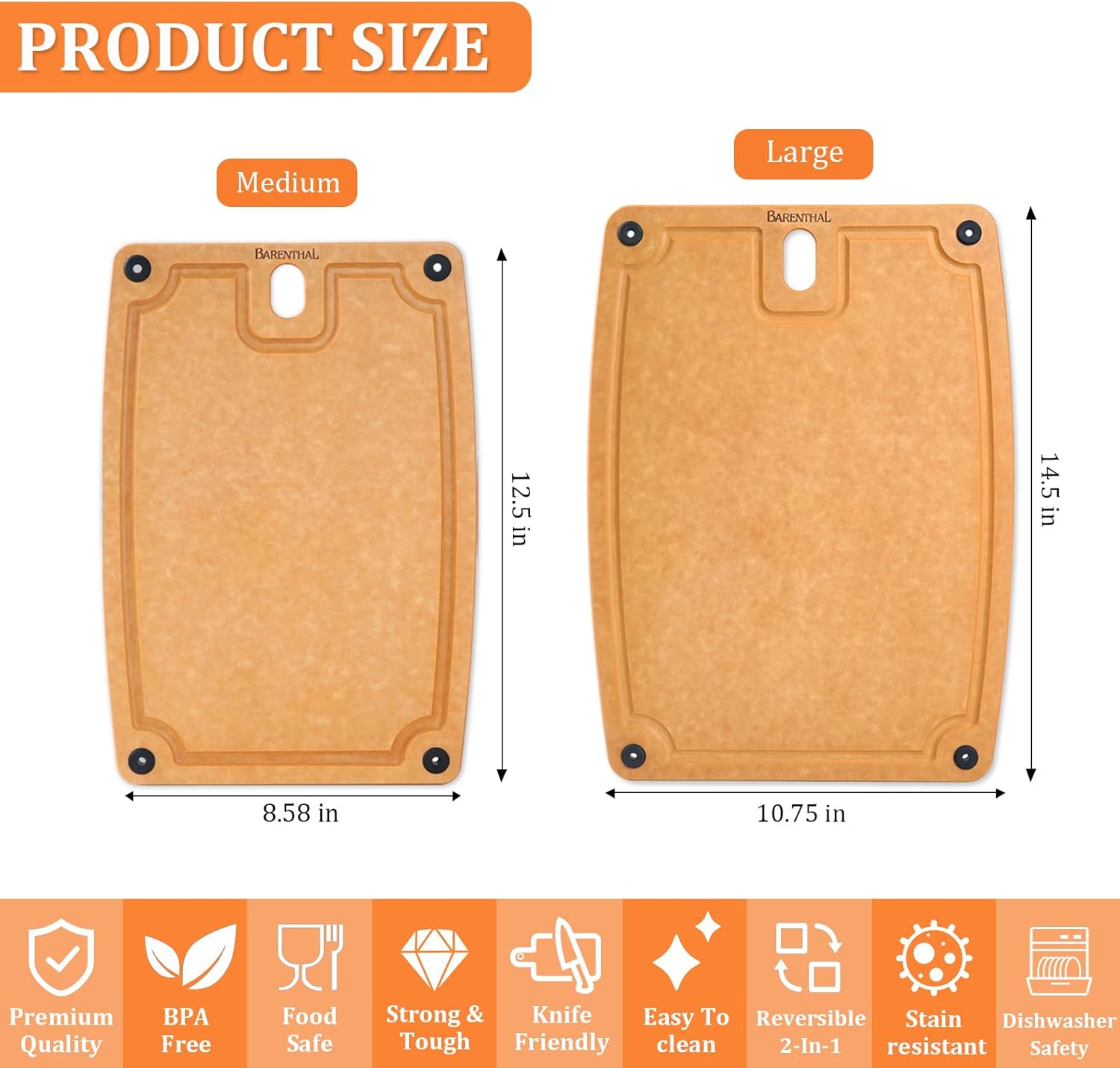 - โ [๐ซ๐๐๐๐๐๐๐๐๐ ๐บ๐๐๐] : Crafted from natural composite material, this cutting board resists warping and crackingโeven in the dishwasher! For longevity, we recommend the quick wash model when use dishwasher. [๐๐ฉ๐ช๐ง๐๐ฎ ๐๐ช๐ฉ๐ฉ๐๐ฃ๐ ๐๐ค๐๐ง๐] : thanks to its natural composite material , it makes the cutting board durable, knife friendly, keep new. Not like bamboo/wooden or plastic chopping boards that get moldyใwarp and crack after a long time.