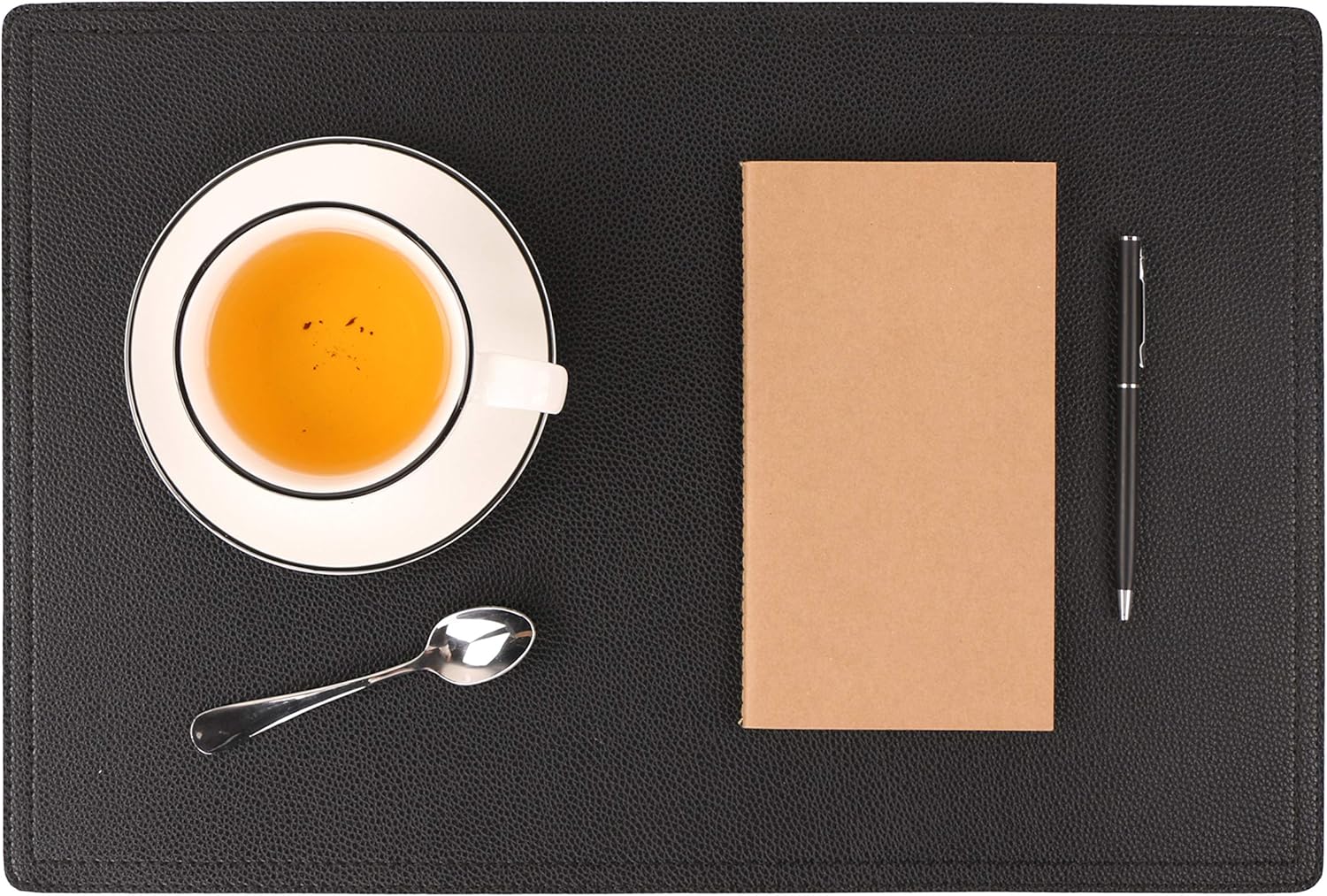 Set of 8 Faux Leather Placemats, PU Table Mats, Waterproof, Stain Resistant, Heat Resistant, Easy to Clean for Kitchen Dining Table,Conference Table C Black Rectangle